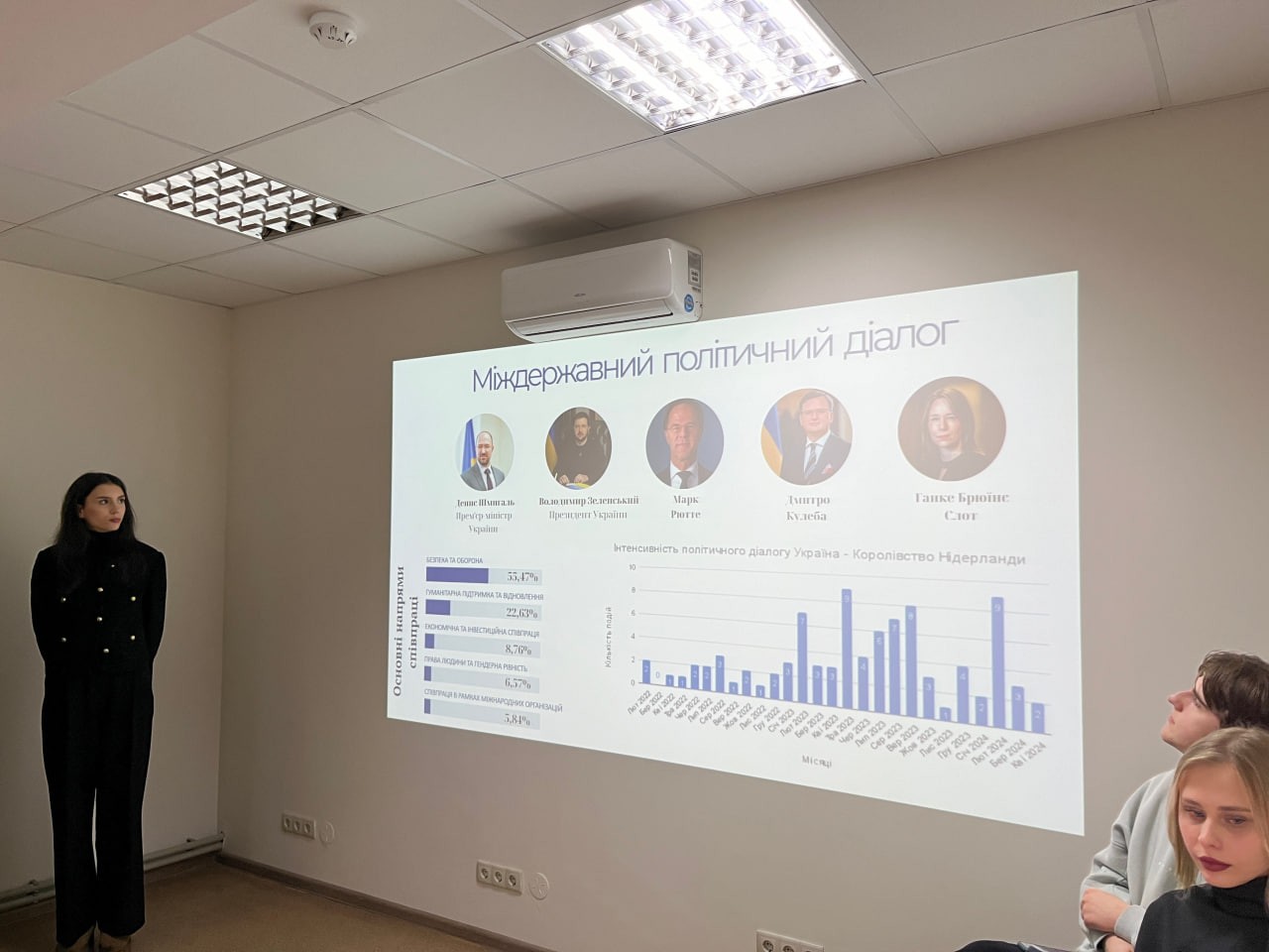 10 березня 2023 року відбулася зустріч студентів освітніх програм «Суспільні комунікації», «Регіональні студії» першого (бакалаврського) та другого (магістерського) рівнів та студентів першого (бакалаврського) рівня ОП «Міжнародне право» із студентами Лейденського університету. Зустріч відбулася на запрошення кандидата філологічних наук, доцента, гостьового дослідника та лектора Гуманітарного факультету Лейденського університету (Нідерланди) Вікторії Ригованової в межах авторського курсу «Що означає бути українцем?». Участь в зустрічі прийняв також професор кафедри міжнародних відносин, доктор історичних наук, Надзвичайний та Повноважний Посланник першого класу О.Г. Цвєтков. Зустріч організовано доцентом кафедри міжнародних відносин, кандидатом історичних наук Тетяною Ілюк на запрошення лекторки курсу за ініціативи кафедри міжнародних відносин в межах діяльності Інформаційно-аналітичного центру. Посилання на подію