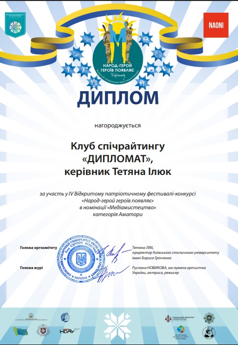 27 жовтня 2023 року, в рамках підготовки до онлайн-зустрічі з американськими студентами католицького університету Сетон Хол (штат Нью Джерсі, США), відбулася зустріч Клубу Спічрайтингу «ДИПЛОМАТ». В ході зустрічі кандидат історичних наук, доцент кафедри міжнародних відносин, керівник Інформаційно-аналітичного центру ФПМВ Тетяна Ілюк ознайомила студентів із правилами публічного виступу в крос-культурному середовищі, розповіла про ключові проблеми промотування України в світі, разом продумали цікаві аспекти представлення нашої країни в середовищі австрійської аудиторії. Зі специфікою американської ментальності, станом розуміння України серед американського студентства здобувачів ознайомила доцент кафедри історії України Факультету суспільно-гуманітарних наук, кандидат історичних наук, доцент О. Тарасенко. Участь в роботі Клубу спічрайтингу «ДИПЛОМАТ» прийняли здобувачі освітніх програм «Суспільні комунікації» та «Регіональні студії» першого (бакалаврського) та друго (магістерського) рівнів вищої освіти. Посилання на подію