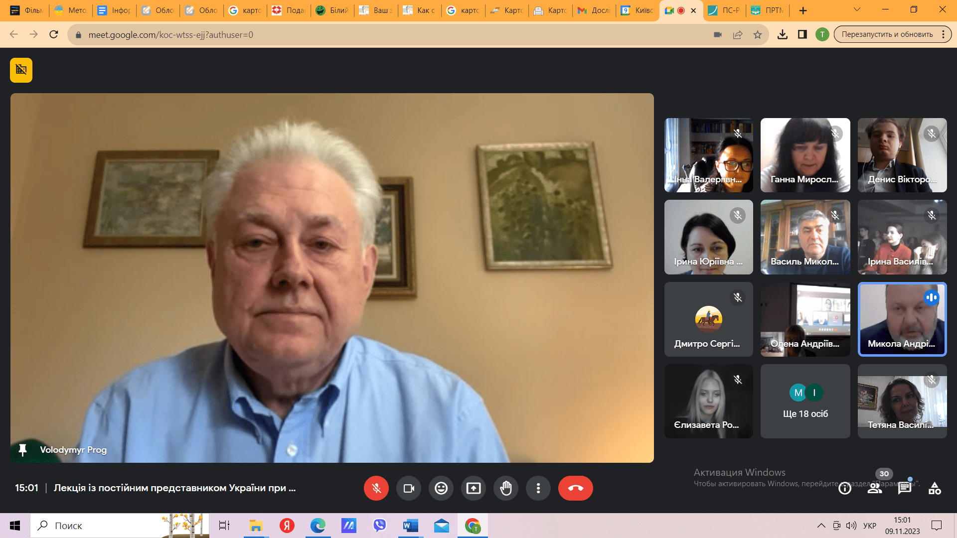 09 листопада 2023 року у Центрі компетентностей «Дипломатично-протокольна служба» відбулося практичне заняття з дисципліни «Дипломатичний протокол та етикет» за участю Надзвичайного і Повноважного Посла України, Представника України при ООН (1997-2001 рр., 2015-2019 рр.), Посла з особливих доручень Міністерства Закордонних Справ України Володимира Юрійовича ЄЛЬЧЕНКА.