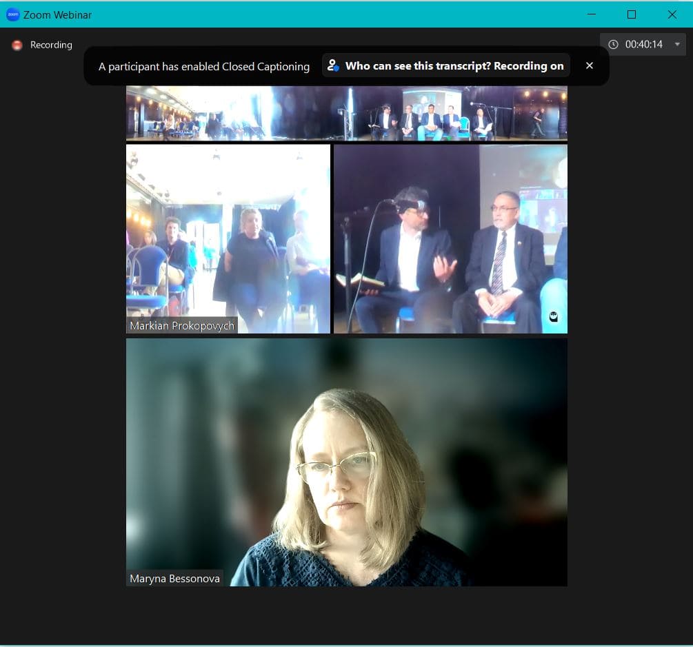 Співмодератором роботи сесій була доцент кафедри міжнародних відносин Марина БЕССОНОВА, яка ініціювала та організувала підготовку та участь здобувачів бакалаврських освітніх програм «Регіональні студії» та «Суспільні комунікації» у цій дискусії.