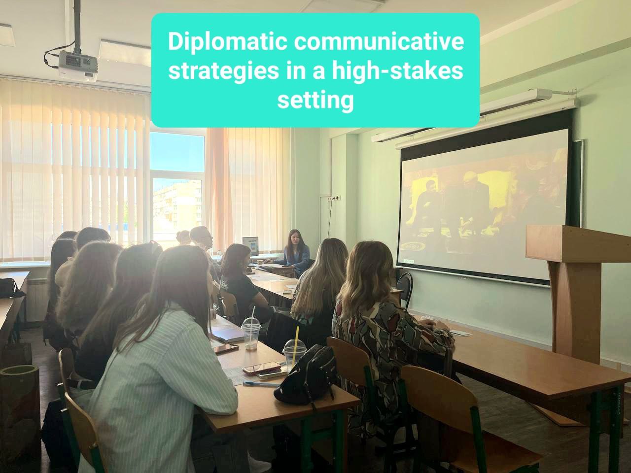 Темою першого засідання гуртка була зустріч президента Зеленського з президентом Трампом та сенатором Венсом у Овальному офісі 28 лютого 2025 р. Учасники гуртка проаналізували засоби дипломатичної комунікації вказаних політиків, визначили їх комунікативні стратегії, лінгвістичні засоби та риторику. Студенти також вправлялись у вимові англійських дипломатичних титулів та відповідних форм звертання.