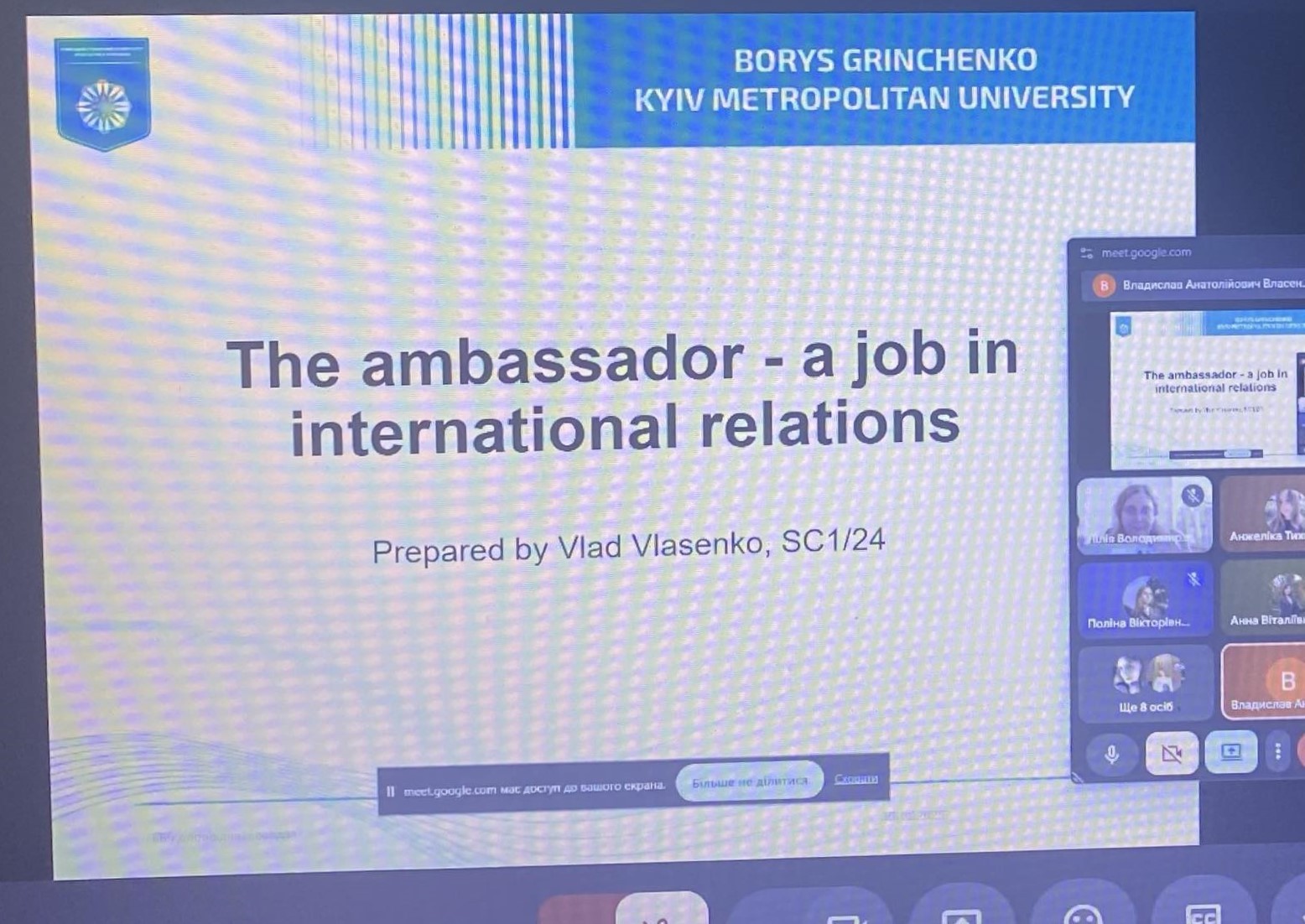 16 травня 2025 р. на п’ятій та шостій парах в аудиторії 601 відбулось засідання фахового гуртка English Diplomatic Hub, мова спілкування – англійська. У засіданні брали участь студенти другого курсу спеціальності «Суспільні комунікації», модератором виступила старший викладач кафедри іноземних мов Факультету права і міжнародних відносин Книшевицька Лілія Володимирівна.