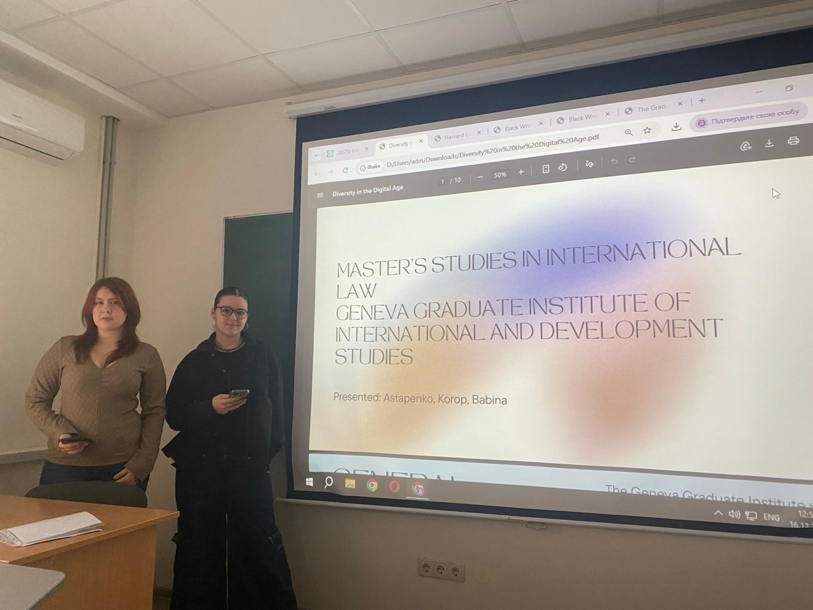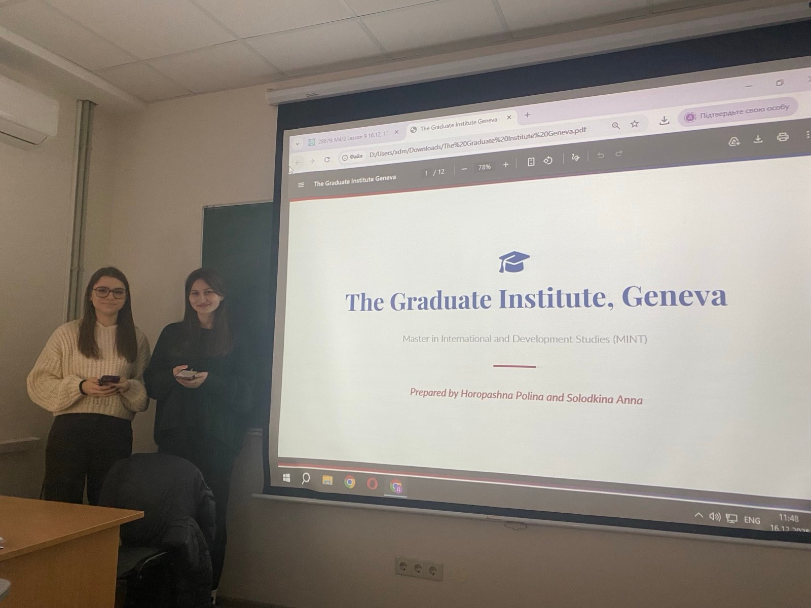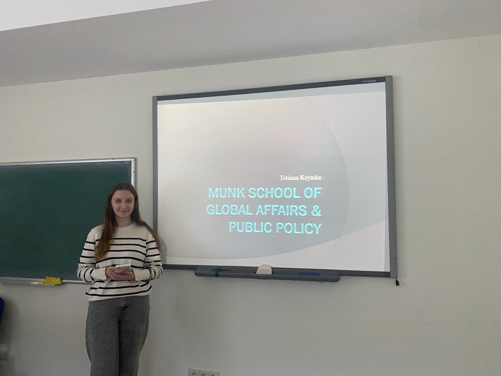 У рамках вимог професій в міжнародних відносинах, дипломатії та суміжних напрямках до рівня фахової освіти, яку кожен наш студент вибрав для себе, студенти отримали завдання знайти магістерську програму в університеті світу, яка співзвучна з їх фаховими інтересами, зібрати інформацію про спеціалізацію, вимоги та процедури вступу, умови фінансування, види фінансової допомоги, тести, які потрібно здати та іншу необхідну інформацію та поділитись цей інформацією на засіданні кружку. У результаті створився прекрасний поліфонічний, надихаючій та інформативний круглий стіл, де студенти-міжнародники в формі чудових індивідуальних та групових презентацій ділились та обмінювались інформацією, яка їм цікава і яка стане їм у нагоді в майбутньому.