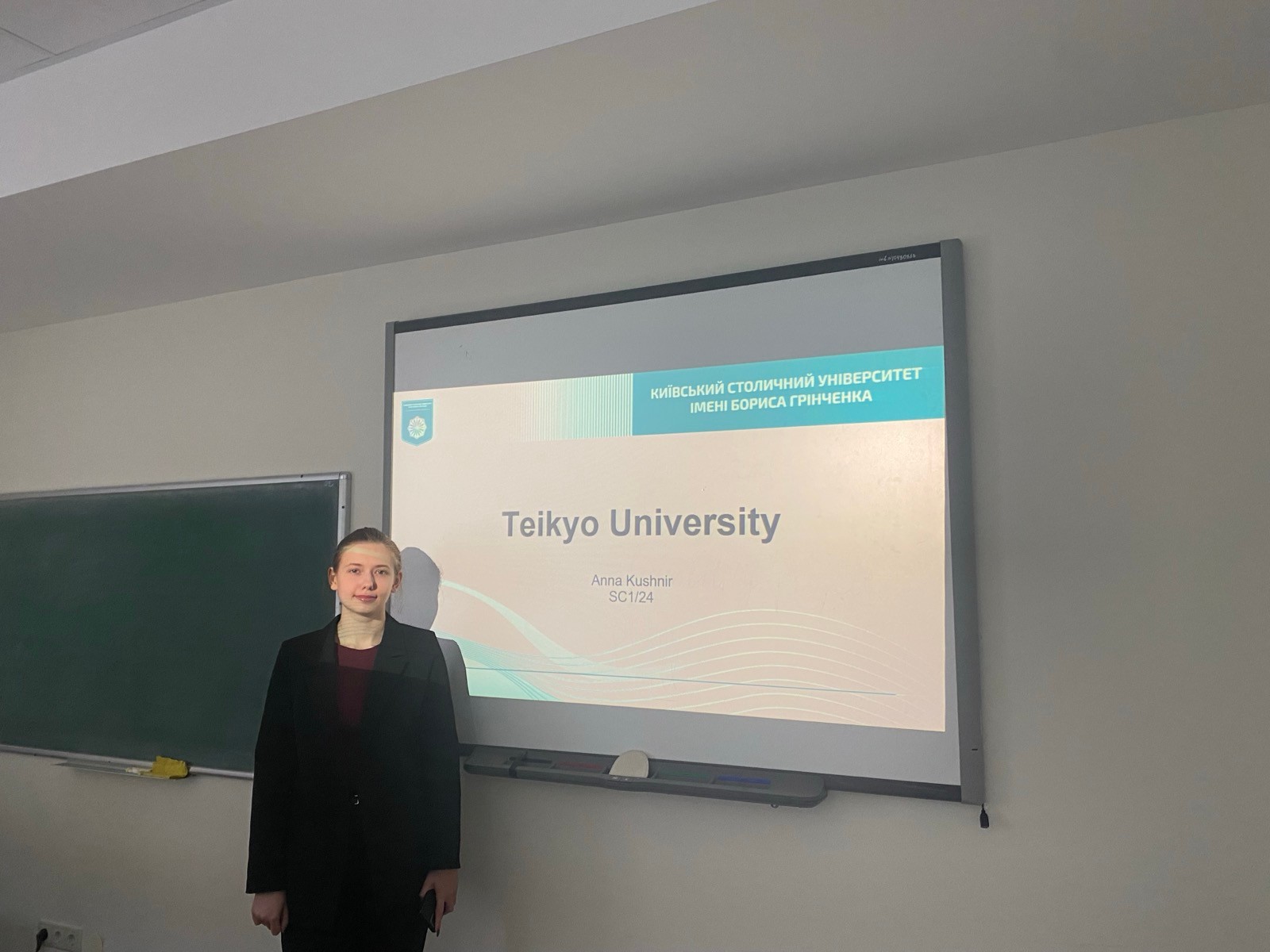 Кафедра іноземних мов продовжує виховання інтелігентних, обізнаних та освічених сучасних фахівців в міжнародних відносинах. 10 березня 2026 р. відбулось чергове засідання науково-практичного гуртка Diplomatic English Hub зі студентами другого курсу освітніх програм «Суспільні комунікації» та «Регіональні студії». Модератором зустрічі була Книшевицька Лілія Володимирівна, старший викладач кафедри іноземних мов. Темою зустрічі стали дипломатичні лінгва франка минулих та сучасних цивілізацій.