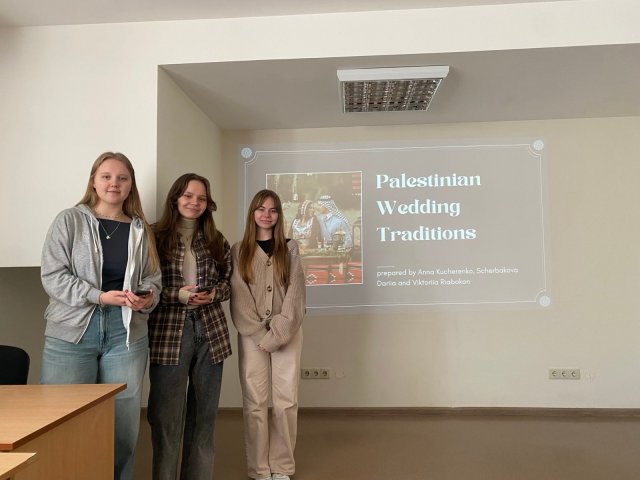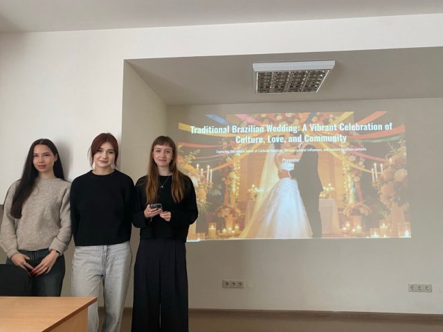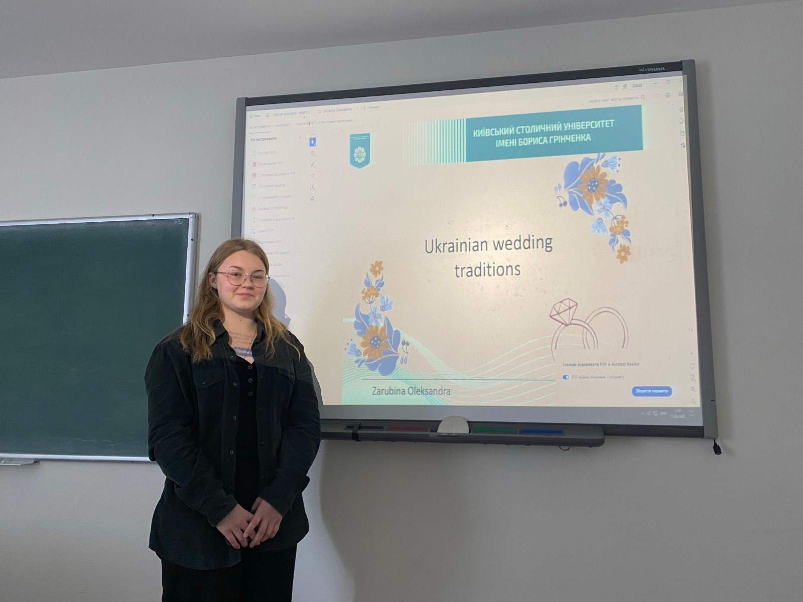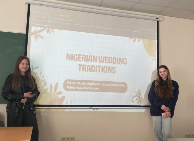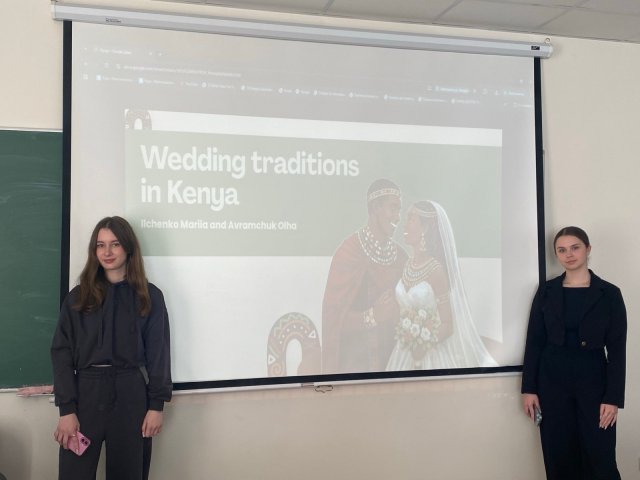 Студенти представили англійською мовою 15 групових проєктів в інтерактивній грі, яка називається «Catering the wedding» про культуру та значення церемоній Японії, Китаю, Кенії, Нігерії, Індії, Пакистану, України, Італії, Бразилії, Мексики, Палестини, Марокко, Південної Кореї, Казахстану та Норвегії.