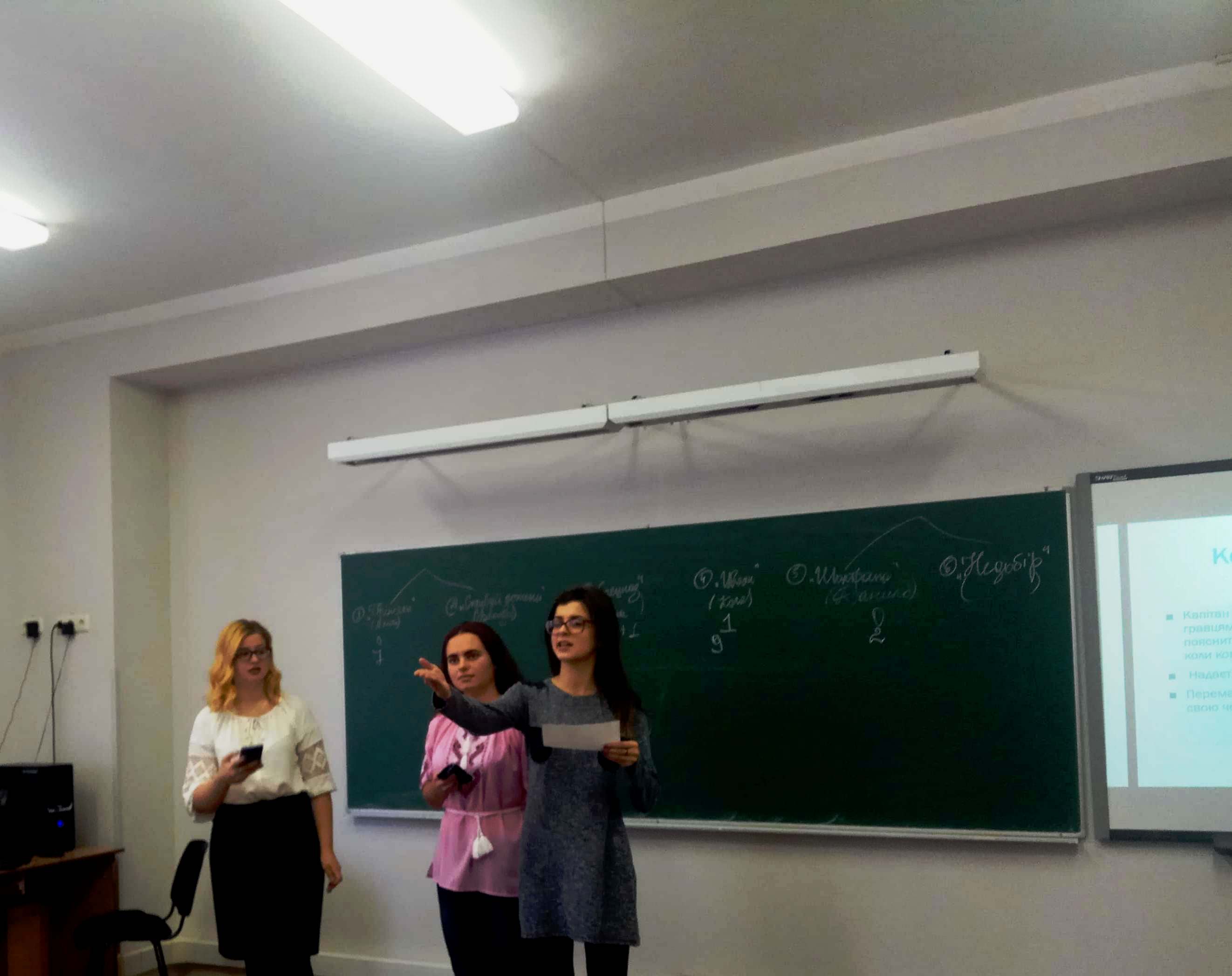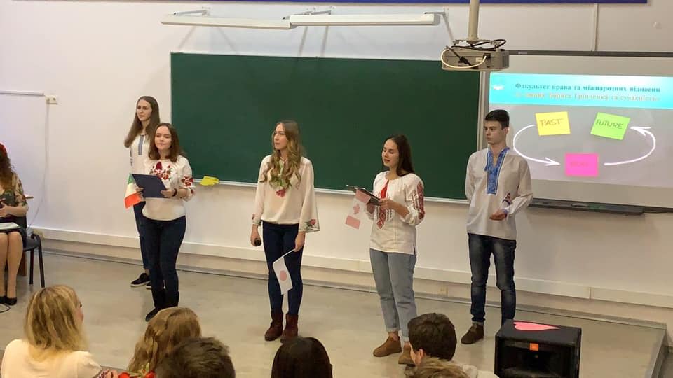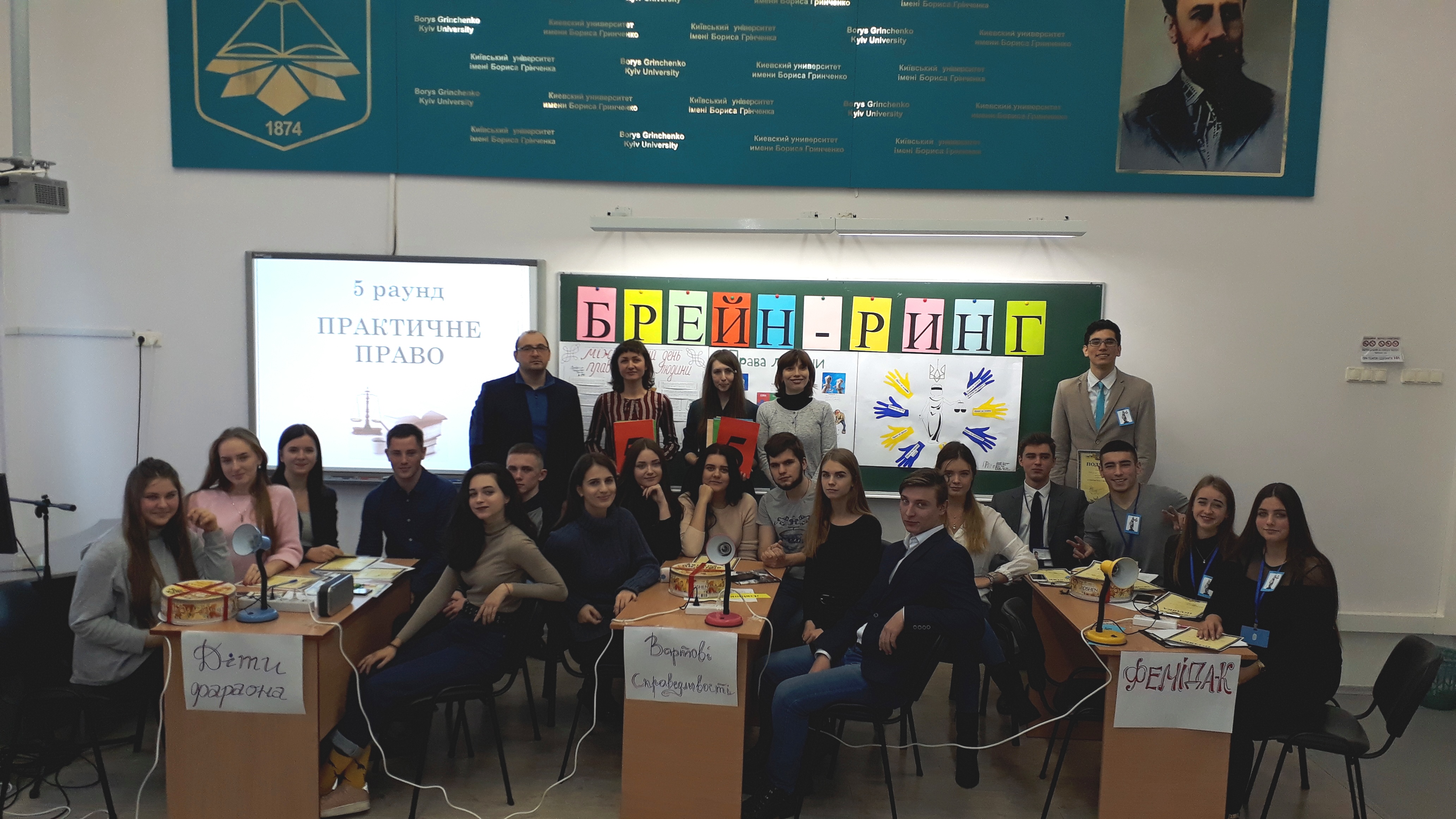Старший викладач кафедри англійської мови Кушевська Наталя Миколаївна та доцент кафедри англійської мови Громова Наталя Михайлівна провели спільний круглий Стіл «Патріотизм очима Бориса Грінченка» для студентів Факультету права та міжнародних відносин й Інституту журналістики. Старший викладач кафедри публічного та приватного права - модератор заходу Обловацька Наталія Олександрівна спільно з викладачем Циклової комісії суспільних дисциплін і правознавства - Байталюк Ольгою Михайлівною провели пізнавально-інтелектуальну гру Брейн-ринг на тему: «Грінченківці знають свої права» між студентами спеціальності «Право» Факультету права та міжнародних відносин і Університетського коледжу.
