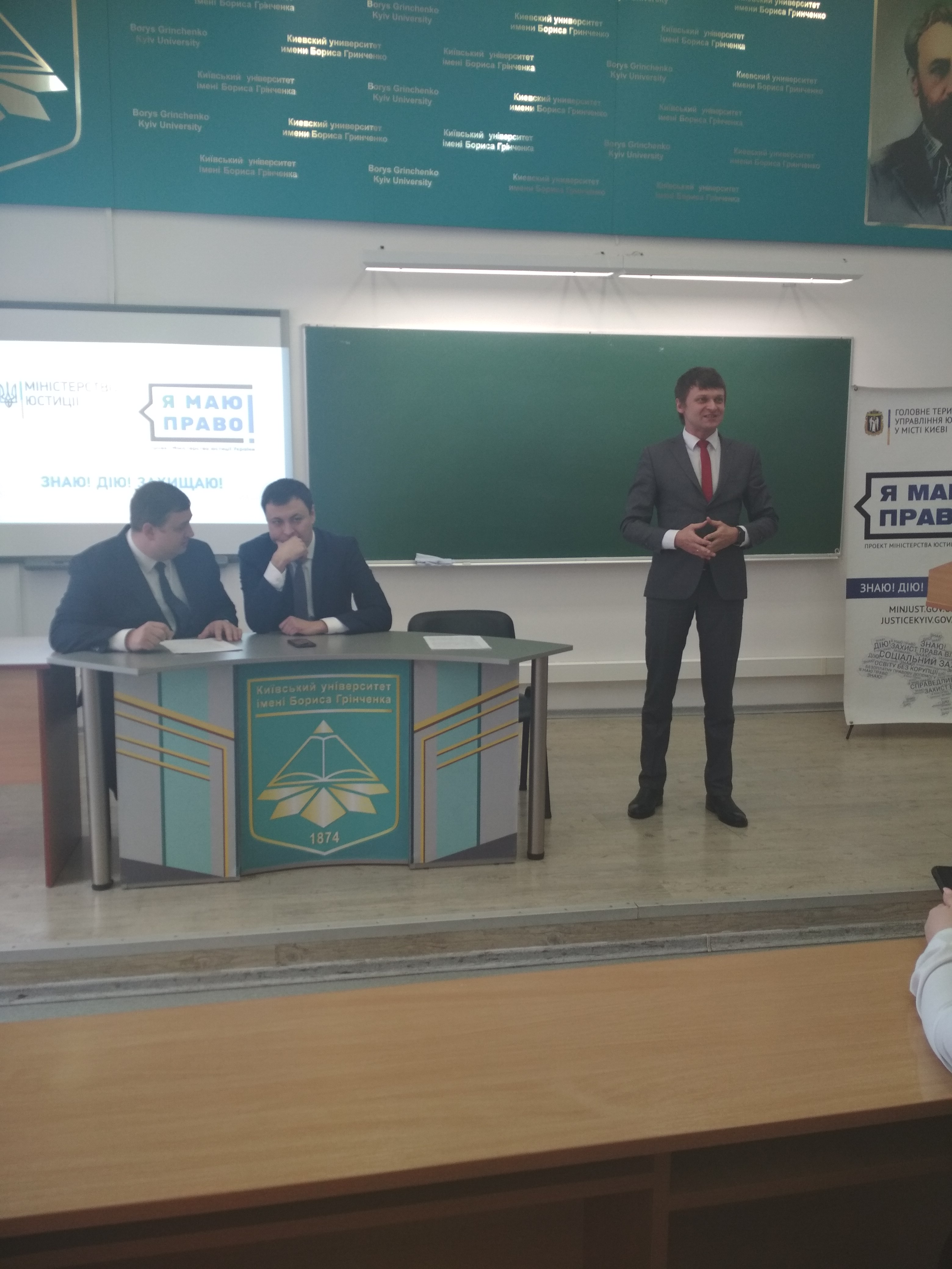 27 лютого 2019 року для студентів 1, 2, 3 курсів спеціальності «Право» Факультету права та міжнародних відносин Головним територіальним управлянням юстиції у місті Києві спільно із кафедрою публічного та приватного права було проведено правопросвітницький захід «Правнича професія у сучасних умовах».