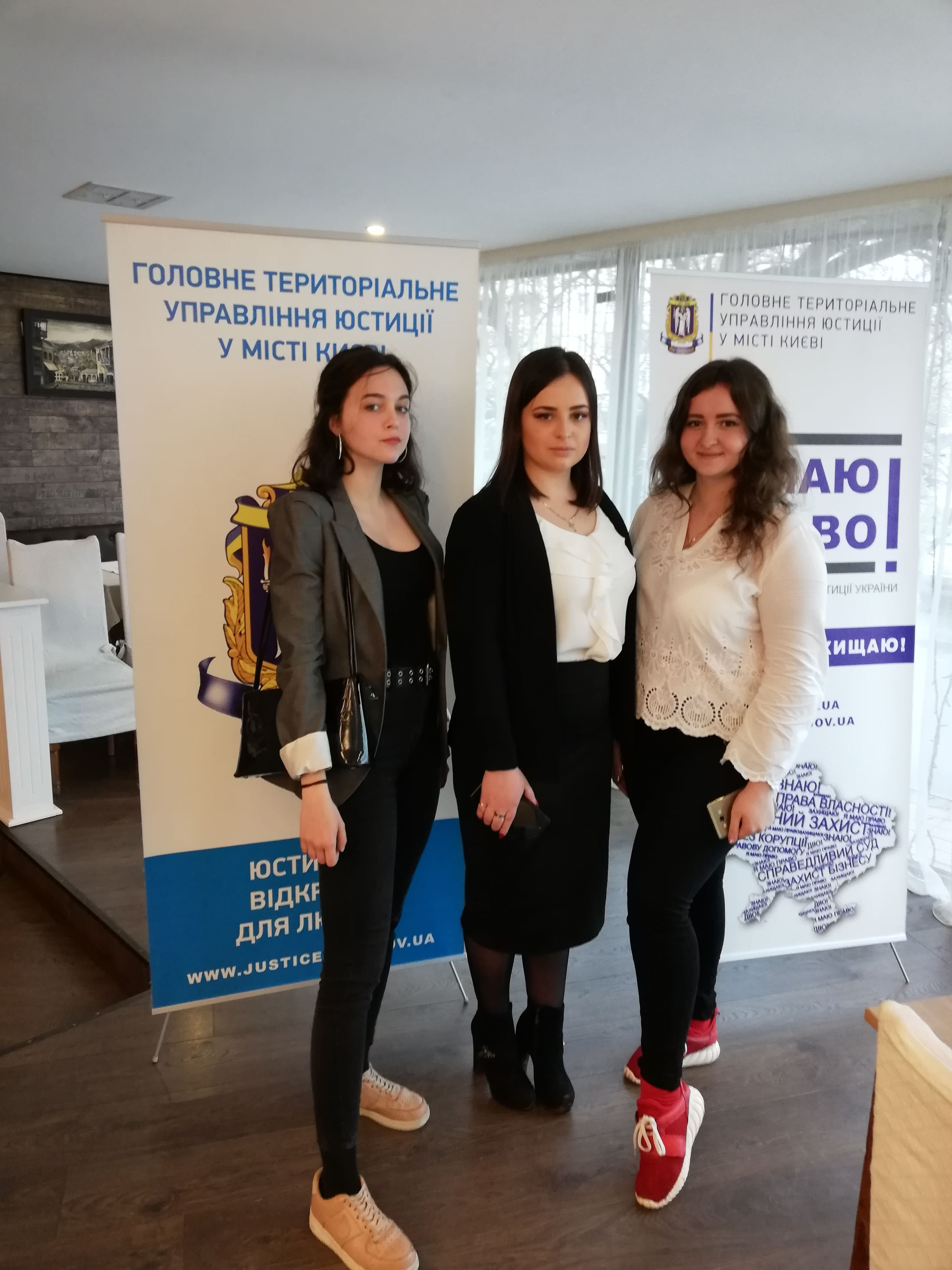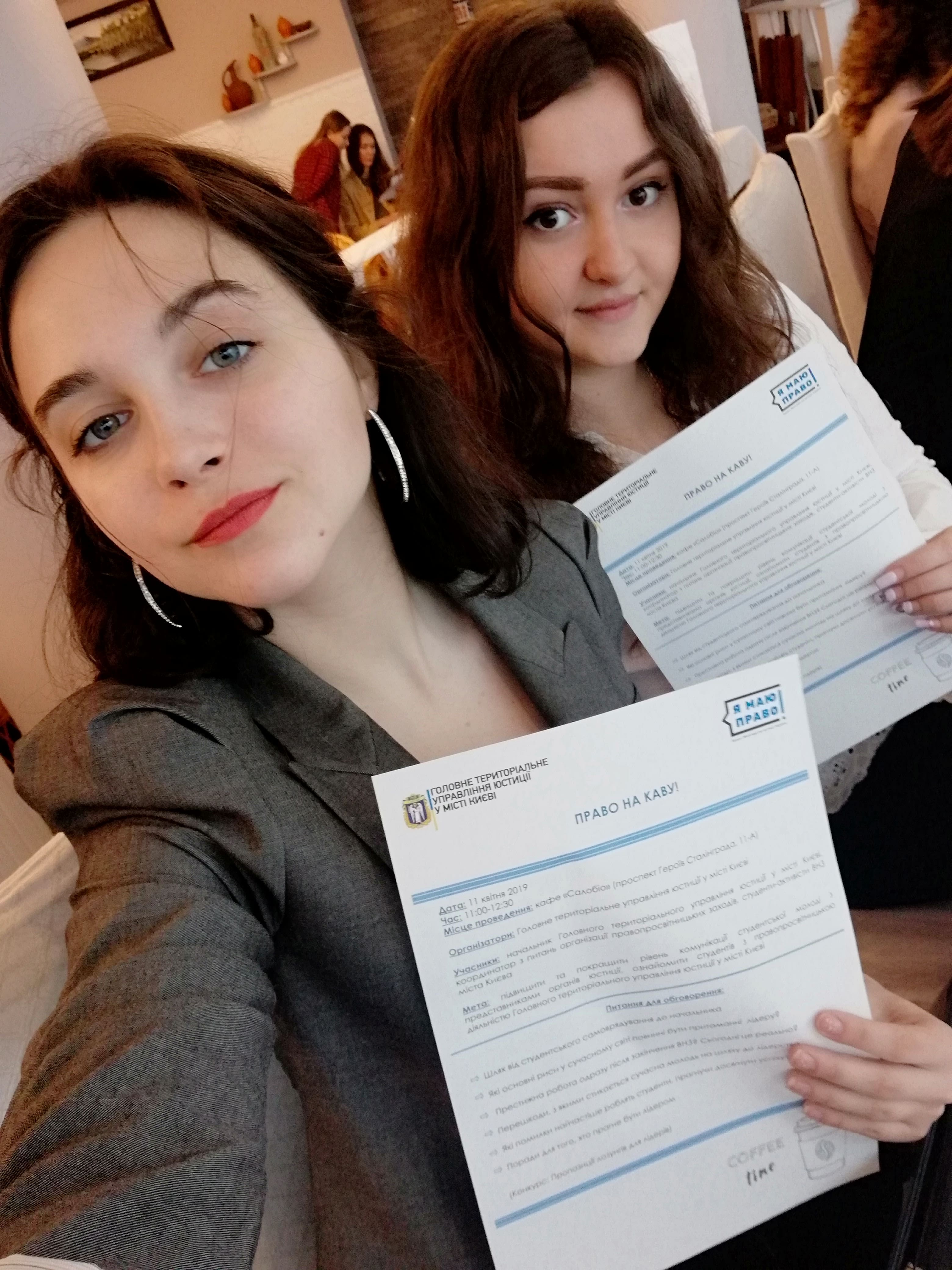 11 квітня на запрошення Головного територіального управління юстиції у м. Києві студентки І курсу спеціальності «Право» Пентіло Дар’я та спеціальності «Міжнародне право» Юрчук Валерія стали учасниками зустрічі очільника столичної юстиції Станіслава Ігоровича Куценка з представниками студентського самоврядування в рамках реалізації загальнонаціонального право просвітницького проекту «Я маю право!» - «Право на каву !».
