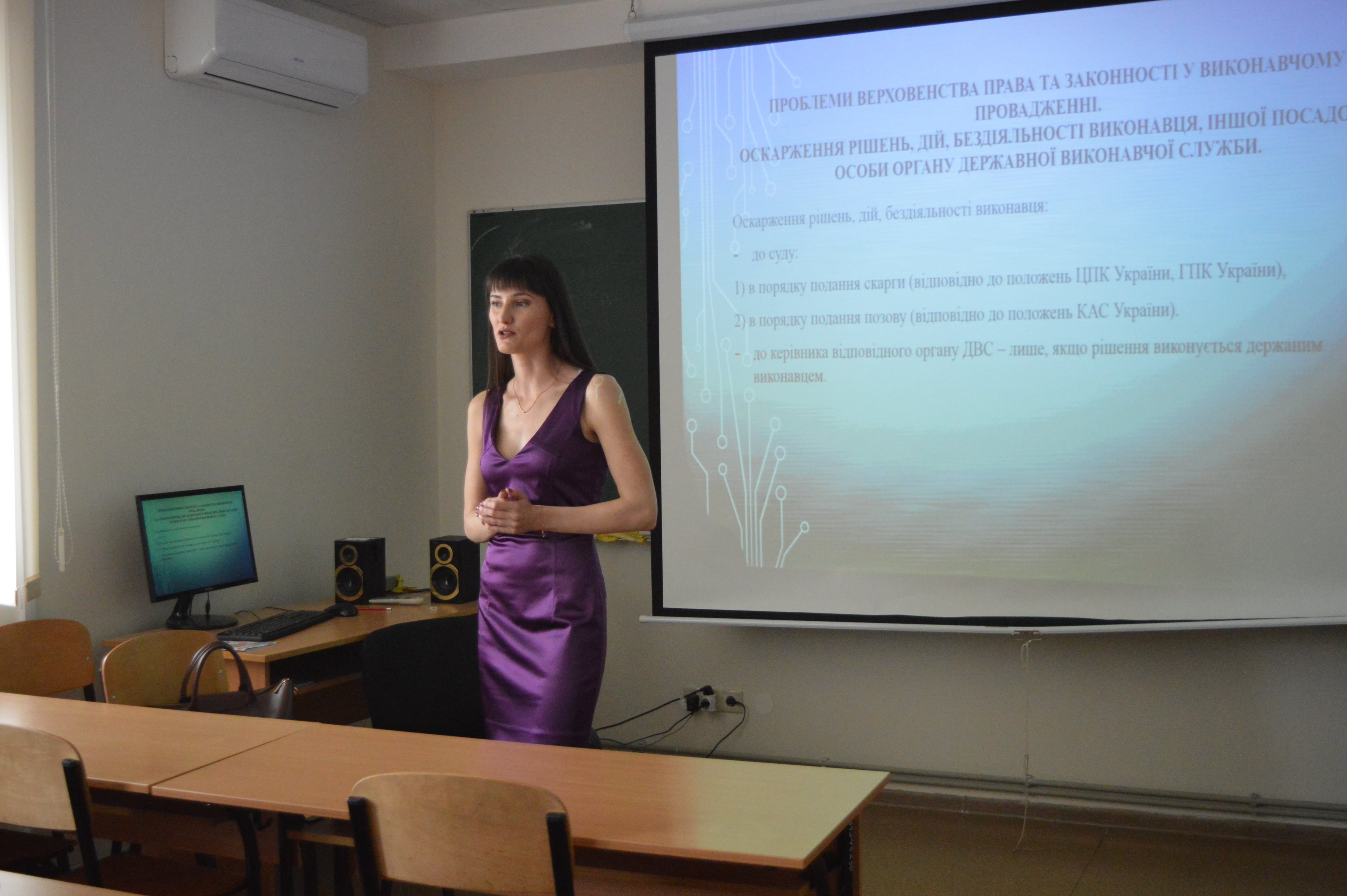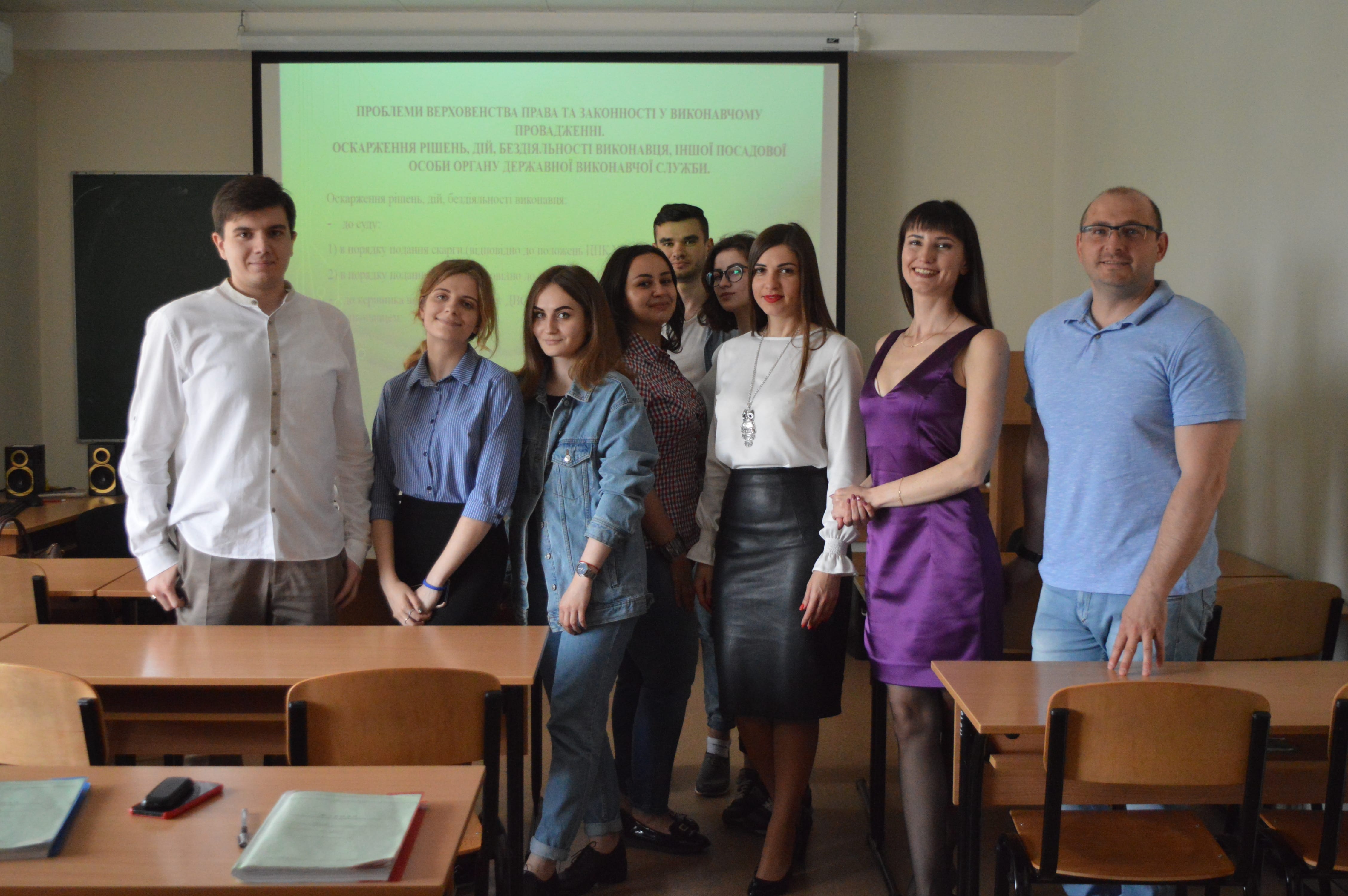 15.05.2019 відбулося відкрите засідання гуртка «Виконання рішень судів, інших органів (посадових) осіб: ефективне відновлення прав». Керівник гуртка – Сергієнко Наталія Артурівна (старший викладач кафедри публічного та приватного права, к.ю.н.), студенти, а також викладачі кафедри публічного та приватного права: Чернега Андрій Петрович (доцент кафедри, к.ю.н.), Калашник Олена Миколаївна (старший виклад кафедри, к.ю.н.) обговорювали проблематику верховенства права та законності у виконавчому провадженні, оскарження рішень, дій, бездіяльності виконавців.