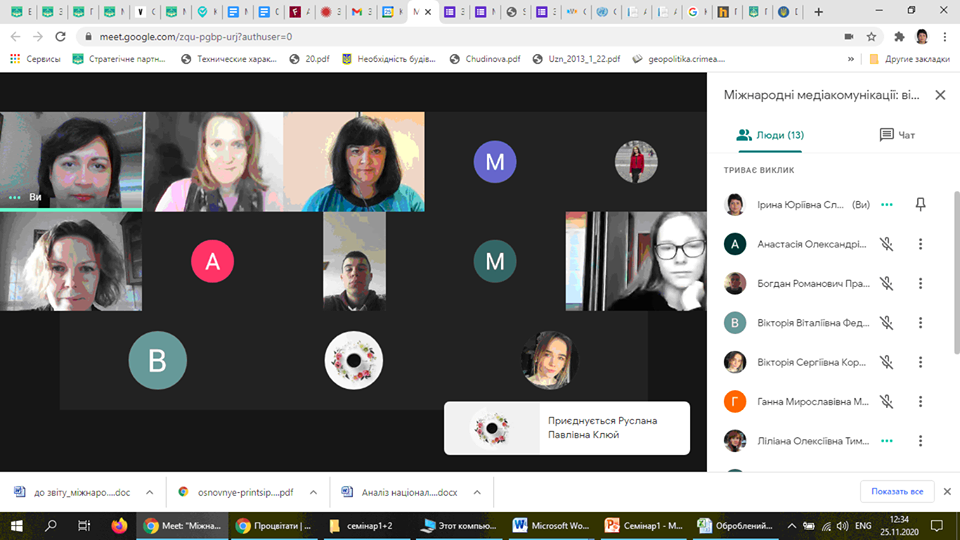 25 листопада 2020 року студенти вказаних освітніх програм галузі Міжнародні відносини разом з доцентами кафедри міжнародних відносин та міжнародного права Тимченко Л.О., Мельник Г.М. та Ілюк Т. В., прослухали семінар, присвячений основам «журналістики даних». Під час семінару учасники з’ясували як за допомогою даних та їх візуалізації можна розповідати актуальні історії, що таке відкриті дані, які вимоги до них існують, як та де їх знайти, опрацювати та візуалізувати за допомогою Flourish. Ініціювала семінар доцент кафедри міжнародних відносин та міжнародного права Слюсаренко Ірина Юріївна, яка провела його в межах проєкту «Використання даних у боротьбі проти маніпуляцій та дезінформації». Цей семінар відбувся в рамках співпраці Інформаційно-аналітичного центру та Наукового товариства студентів, аспірантів докторантів і молодих вчених Факультету права та міжнародних відносин Київського університету імені Бориса Грінченка.