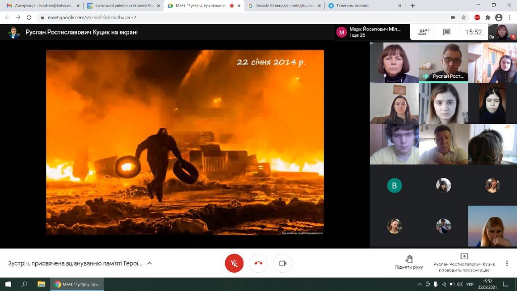 22 січня  студенти – першокурсники ФПМВ, на запрошення Історико – філософського факультету Університету Грінченка, відвідали знаковий захід, присвячений пам’яті Героїв Небесної Сотні, у якому кожне слово, кожний спогад, кожна візуалізована подія тих страшних для України днів стала даниною пам'яті  студентів –грінченківців, чиї попередники в 2013- 2014 роках зробили свідомий вибір