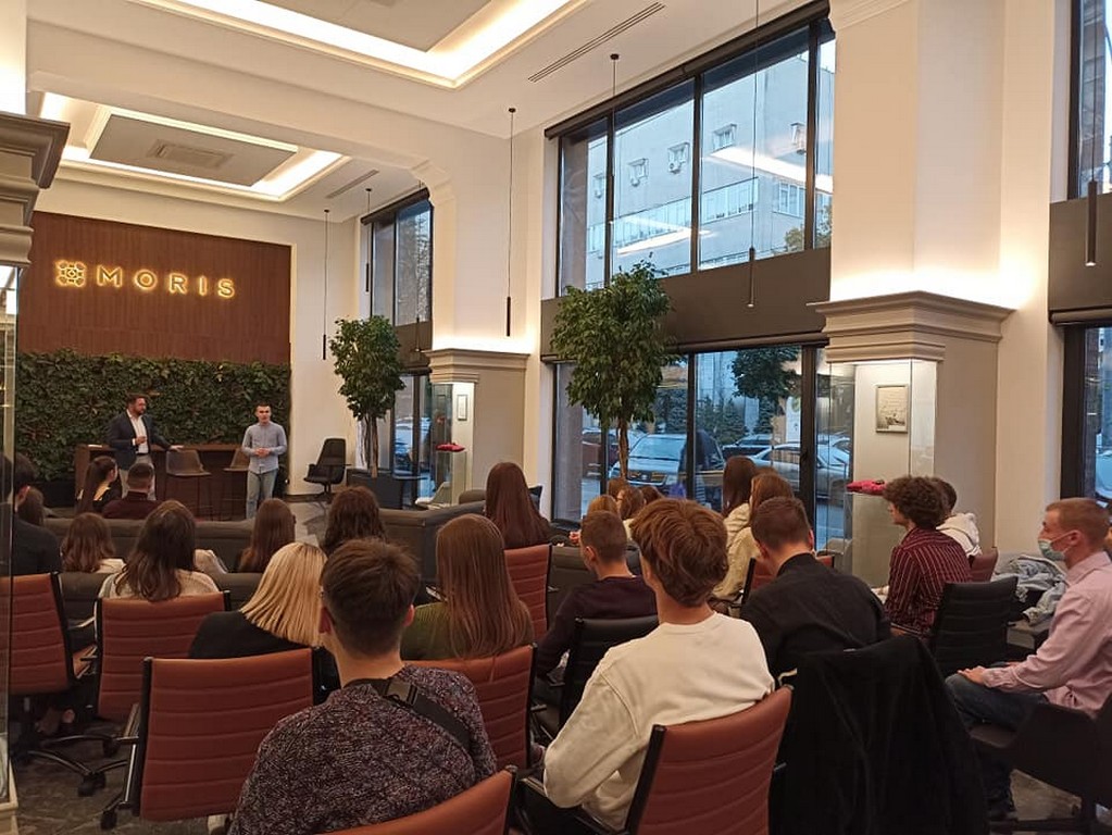 Студентів гостинно прийняв офіс ЮК Moris , який створено за концептом open space , де вони мали змогу "піддивитись" як все працює всередині. Під час розмови до пана Андрія приєднався пан Володимир Тимошенко , який є партнером компанії і розповів про важливі аспекти творення саме кримінальної практики.