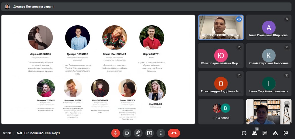 Дмитра Потапова запросила доцент кафедри міжнародних відносин та міжнародного права, кандидат історичних наук, доцент Слюсаренко Ірина Юріївна, з метою посилення практико-орієнтованої спрямованості освітнього компоненту «Аналіз зовнішньої політики країн світу», в межах функціонування Інформаційно-аналітичного центру Факультету права та міжнародних відносин.