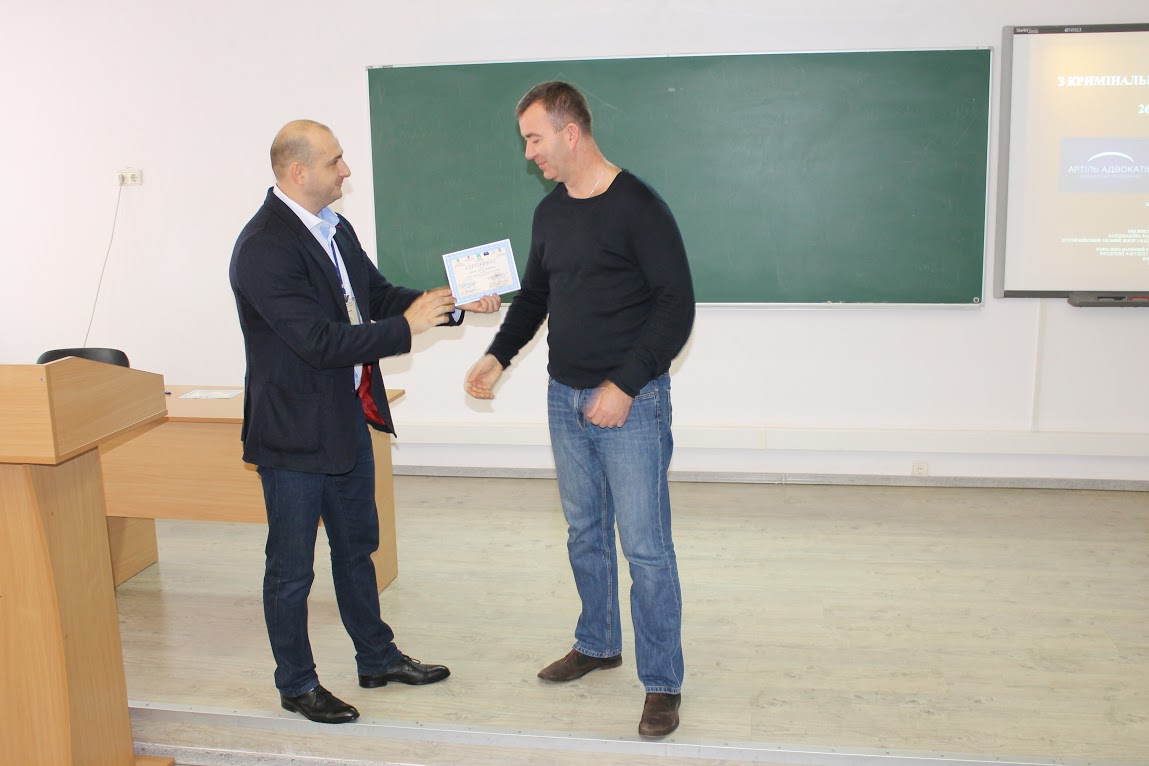 Захід акредитований відповідно до Рішення експертної ради з питань акредитації та сертифікації при Національній асоціації адвокатів України за № 124 від 18 листопада 2016 року, кожен адвокат отримав Сертифікат про підвищення рівня кваліфікації (5 балів), відповідно до Закону України «Про адвокатуру та адвокатську діяльність» та Порядку підвищення кваліфікації адвокатів України, затвердженого рішенням Ради адвокатів України за № 85 від 16 лютого 2013 р.