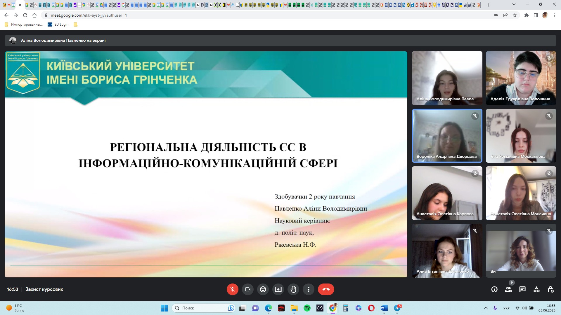 Вітаємо з успішним захистом курсових робіт студентів ІІ курсу освітньої програми «Суспільні комунікації»! Пишаємося тим, що наші студенти, завдяки серйозному підходу до написання наукових робіт, наполегливій та злагодженій роботі з науковими керівниками, зуміли гідно презентувати свої дослідження із найрізномінатніших аспектів міжнародних відносин та суспільних комунікацій. Захист успішно пройшов на кафедрі міжнародних відносин 05 червня 2023 року. Вітаємо викладачів та студентів з успішним подоланням відповідального та складного завдання у такий непростий для України час! Щиро бажаємо нашим студентам зберегти запал до пізнання й наукового аналізу нового та недослідженого!