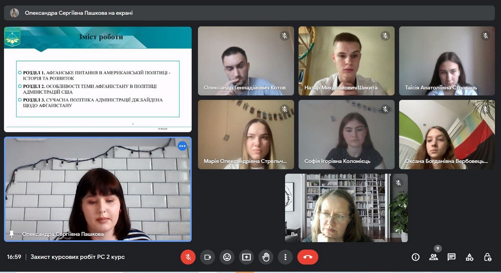 07 червня 2023 р. відбувся захист курсових робіт у здобувачів освітньої програми «Регіональні студії» першого (бакалаврського) рівня. Студенти презентували результати своїх перших наукових досліджень. Тематика курсових робіт презентує всю різнобарвність регіональних студій. Студенти мали можливість на початку навчального року обрати тему з переліку, який пропонує кафедра міжнародних відносин, а також запропонувати свої теми. Серед робіт були наукові пошуки специфіки туристичного потенціалу країн Північної Америки (США, Канада, Мексика), Європи (Італія, Велика Британія), Азії (Китай). Наші студенти вивчали двосторонню співпрацю (Україна та Польща); геополітичний вимір – як теоретичного плану, так і країнознавчий вимір (Польща, США, Індія); державний устрій та політичні системи країн світу: Німеччини, Іспанії, Індії, Франції, КНР, Туреччини, Мексики тощо. Привернули увагу наших здобувачів і питання міграції, урбанізації, освіти, безпеки, культури, м’якої сили тощо. У цілому, регіональне різноманіття тематики досліджень, проведених в рамках курсових робіт охопило Європу, Америку та Азію. Захист відбувався у міні-групах, перед членами комісій, сформованих з наукових керівників. Захист курсових робіт став тим майданчиком, де студенти змогли на практиці застосувати свої вміння готувати презентації, використовувати корпоративний стиль, упевнитися у тому, наскільки важливими є питання академічної доброчесності (всі роботи перед захистом перевірялися на наявність запозичень через систему StrikePlagiarism).