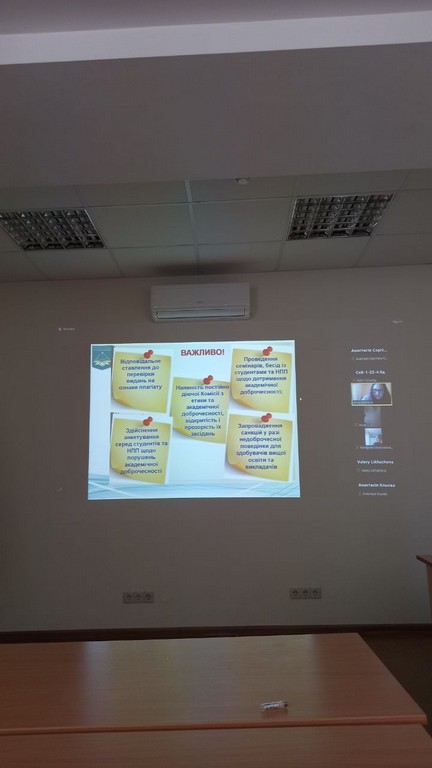 Ганна Мирославівна наголосила на важливості дотримання правил академічної доброчесності при написанні студентами курсових робіт. Вона ознайомила їх з особливостями оформлення наукових текстів, а також звернула увагу на те, що остаточні тексти наукових досліджень необхідно перевірити на виявлення збігів тексту у системі Strike Plagiarism, який безкоштовно забезпечено на базі Біблотеки Університету.