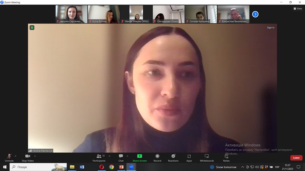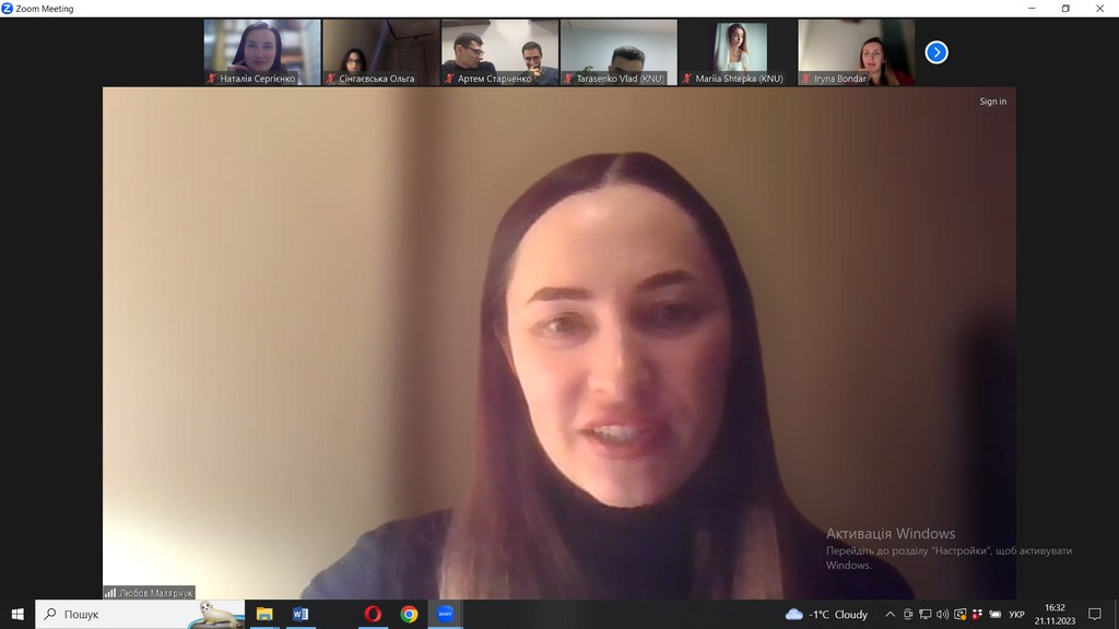 21.11.2023 доктор юридичних наук, професор кафедри публічного права Сергієнко Наталія Артурівна взяла участь в роботі гуртка «Виконавче провадження та адвокатура» Київського національного університету імені Тараса Шевченка. В роботі гуртка взяли участь студенти-юристи Київського національного університету імені Тараса Шевченка, доценти Кафедри нотаріального, виконавчого процесу та адвокатури, прокуратури, судоустрою Київського національного університету імені Тараса Шевченка – д.ю.н. Бондар І.В., к.ю.н. Снідевич О. С., к.ю.н. Малярчук Л. С. Темою обговорення були найбільш гострі питання стягнення втрат на професійну правничу допомогу. З доповідями виступили студенти-правники; д.ю.н. Сергієнко Н.А. виступила з доповіддю, де висвітила теорію та практику стягнення витрат на професійну правничу допомогу, проілюструвавши свої доводи актуальною судовою практикою та власним адвокатським досвідом, відповіла на питання присутніх на гуртку щодо обговорюваної теми.