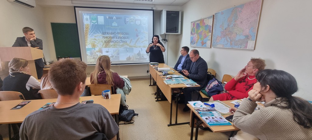 Галина ЛЕВКІВСЬКА – виступила з вітальним словом і привітала учасників Круглого столу з прийдешніми професійними і релігійними святами, побажала усім успіхів і натхнення у професійному кар’єрному зростанні, Божого благословення, миру і добра на шляху до юридичної досконалості. Щоб скоріш Україна перемогла супостата – Московію, очистила свою землю від «любітєлєй русского міра», щоб скоріш настав мир і спокій на нашій благословенній землі, а воїни які надають нам можливість сьогодні проводити такі чудові заходи, повернулися живи і неушкодженими. Маючи величезний досвід роботи в педагогічній та освітній правничій діяльності, акцентувала увагу студентів – майбутніх правників на тому, що саме такі заходи і є тим містком між теорією і практикою, занурюють молоде покоління у вирій юридичних подій, реформ та звершень. Дозволяють безпосередньо познайомитися з найкращими представниками юриспруденції та перейняти їхній досвід поколінь. Захід відбувся, також, напередодні великого церковного свята, яке відзначається щороку в Україні 14 жовтня – Покрова Пресвятої Богородиці. На Покрову заведено відвідувати церковну службу і молитися іконі Покрови Божої Матері. Вважається, що всі прохання Богородиці в цей день будуть почуті. Свято розпочали святкувати у Х ст., від коли Константинополь опинився в оточенні ворогів, міщани зібралися у храмі та почали молитися Пресвятій Богородиці за спасіння. Після цього біля храму з’явилася сама Діва Марія в оточенні ангелів, апостолів та пророків, вкривши його своїм омофором місто було врятоване. До речі, Покрова Пресвятої Богородиці була одним з найголовніших свят наших козаків. Шануючи християнську релігію та її святих, збудували багато церковних храмів. Деякі Покровські храми ХVІІ-ХVІІІ ст.ст. вціліли і до сьогодні (Покровський собор Харкова, 1689 р. та київська трибанна церква Покрови на Подолі, 1766 року.). На Покрову козаки вирушали на зимівлю по своїх хуторах та зимівниках, у військовому таборі залишалася тільки стала залога із січовиків, які нічого, крім власної зброї не мали, та інших козаків, що за різними причинами залишалися у своїх куренях. А оскільки в ті часи основним календарем були церковні свята, то і маємо козацьке свято на Покрову.