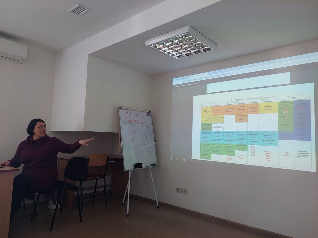 В рамках громадського обговорення проєкту освітньої програми «Суспільні комунікації» першого (бакалаврського) рівня вищої освіти 11 березня 2024 року відбулося спілкування зі здобувачами 2-го року навчання ОП «Суспільні комунікації». Гарант ОП доцент кафедри міжнародних відносин Ірина СЛЮСАРЕНКО ознайомила здобувачів з процесом оновлення освітніх програм, необхідністю відповідності освітньої програми вимогами Стандарту вищої освіти спеціальності 291 «Міжнародні відносини, суспільні комунікації та регіональні студії», параметрами забезпечення якості вищої освіти та власне проєктом оновлення освітньої програми.