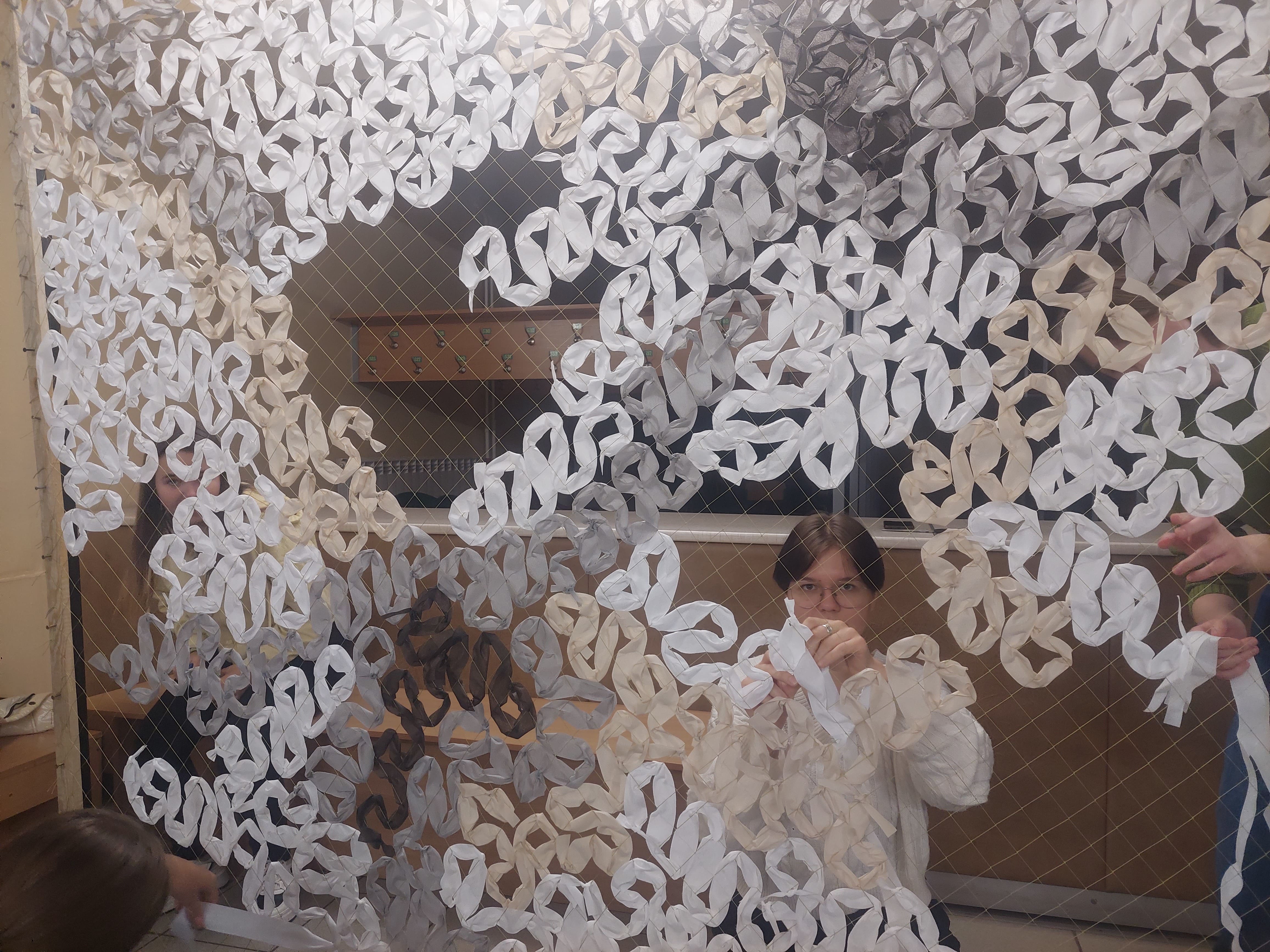 Цьогорічний проєкт ми присвячуємо захисту тих, хто оберігає нас і бореться за кожен метр рідної української землі – нашим Героям. Мрії про Перемогу і мирну Україну студенти демонструють через експозицію «Місця щасливих людей: захист для Героїв!» – велику захисну сітку, яку сплели під наставництвом методиста Студентського офісу №1, представниці Благодійного фонду «Волонтери ЛАД» Юлії Поліщук.