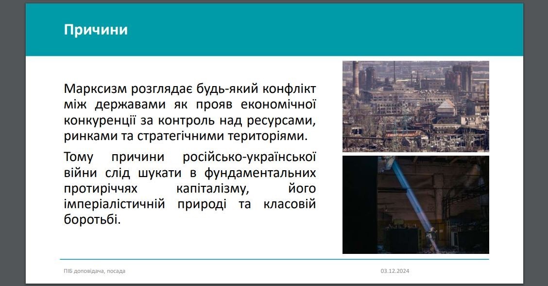 На останньому занятті в рамках дисципліни «Теорія міжнародних відносин» здобувачі освітніх програм «Суспільні комунікації» та «Регіональні студії» першого (бакалаврського) рівня вищої освіти 2го року навчання спробували відтворити свою версію «великих дебатів» у теорії міжнародних відносин. У 2024-2025 навчальному році дебати відбулися між «представниками» трьох основних підходів, а саме цивілізаційного, геополітичного та марксистського. Здобувачі працювали у міні-групах, в яких з позицій обраних теоретичних концепцій підготували презентацію свого бачення російсько-української війни, її витоків та варіанти можливого завершення.