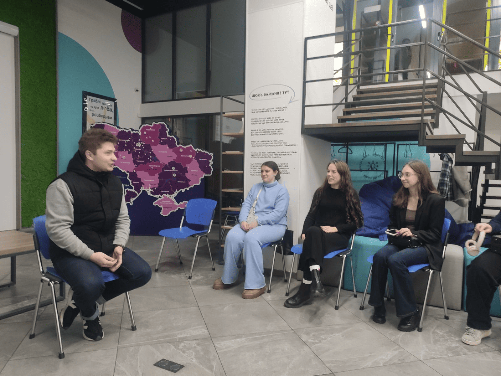 28 жовтня 2025 року у приміщенні громадського простору Vcentri HUB: Оболонь за ініціативи «Центру комунікації» спільно з Північним міжрегіональним центром з надання безоплатної правничої допомоги відбулося фокус-групове обговорення на тему: «Правова обізнаність студентів щодо захисту власних трудових прав під час працевлаштування».
