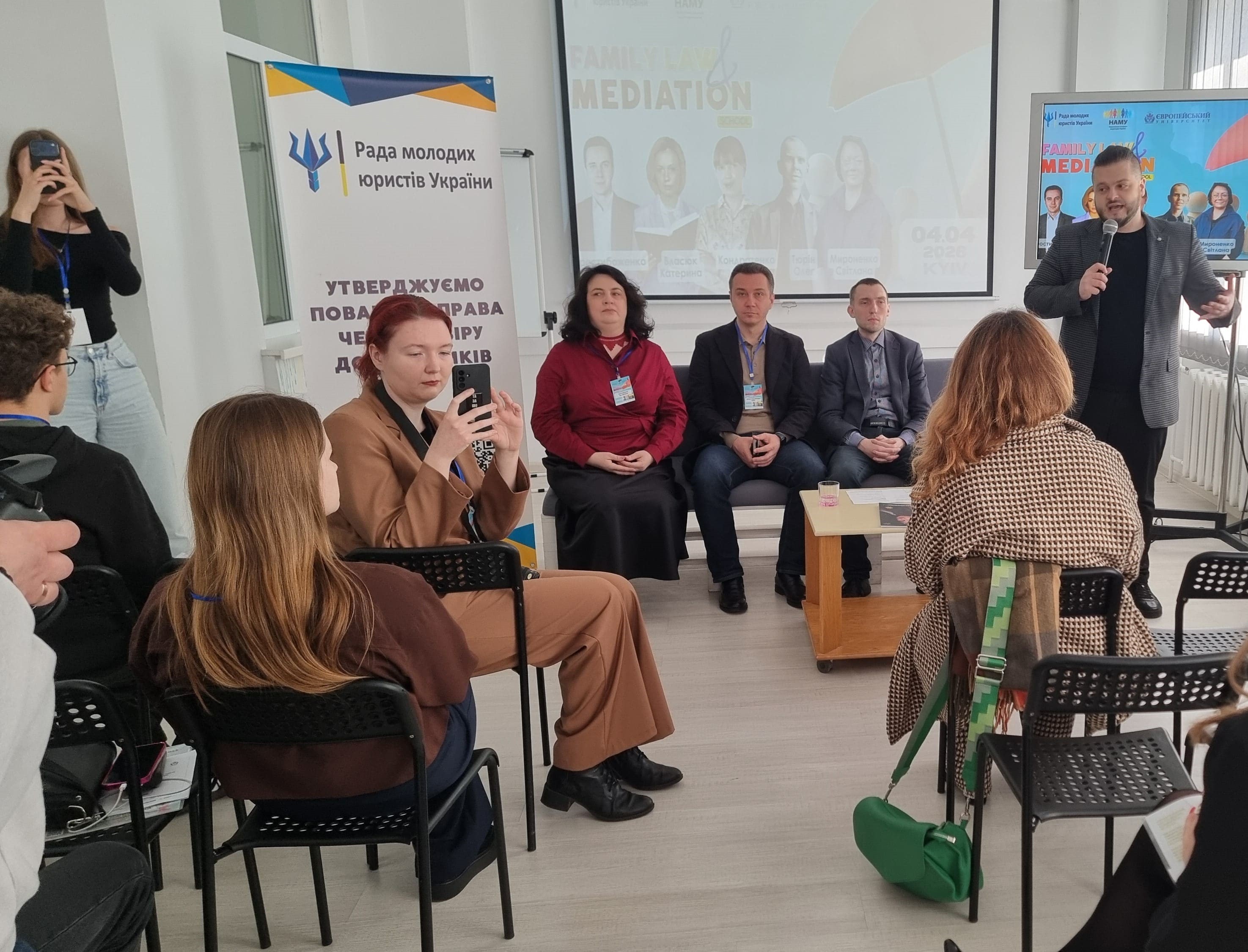 Захід розпочався з вітального слова Євгена КОТОРОБАЯ – голови Ради молодих юристів України, який подякував усім хто долучився до заходу і представив спікерів Школи. Наголосив на тому, що медіація є одним із найпопулярніших альтернативних способів врегулювання конфліктів у європейській та інших правових системах розвинених країн світу. Полягає у залученні посередника (медіатора) або третьої особи, які допомагають сторонам конфлікту дійти згоди, скомунікувати та проаналізувати ситуацію та самостійно обрати найоптимальніший варіант вирішення спору. У перекладі з латини це – посередництво. Фундамент медіації в національному законодавстві був закладений ще задовго до внесення суттєвих змін до процесуальних кодексів України у 2017 році, у вигляді мирової угоди. Відправною точкою втілення медіації в правову систему України став Указ Президента України «Про Концепцію удосконалення судівництва для утвердження справедливого суду в Україні відповідно до європейських стандартів», від 10 травня 2006 року № 361/2006, яким було запроваджено створення альтернативних, позасудових способів розв’язання спорів. У 2016 році почав діяти Державний стандарт надання соціальної послуги посередництва (медіації). 2019 році Міністром юстиції в Сінгапурі було підписано Конвенцію ООН щодо медіації. 22 квітня 2020 року Уряд схвалив проєкт Закону України «Про медіацію», а вже у листопаді наступного року його було схвалено. Тож на законодавчому рівні було визначено правові засади та порядок проведення медіації як позасудової процедури врегулювання конфлікту (спору), принципи медіації, статус медіатора, вимоги до його підготовки та інші питання, повʼязані з цією процедурою. Медіація, переважно, застосовуються у господарських, цивільних та сімейних відносинах. Звісно інститут медіації притаманний і кримінальному праву, але природньо, генетично, він сягає своїм корінням саме врегулювання цивільних та сімейних відносин. Сімейні спори, це одна з найпоширеніших категорій цивільних справ щодо: розлучення, поділу майна, визнання шлюбу, виховання та визнання місця проживання дитини, визнання батьківства, позбавлення батьківських прав тощо. Такі спори є не тільки складними, а й тривалими, які часто призводять до неможливості і небажання сторін досягти згоди; прогалини у цивільному та сімейному праві та їх колізії призводять до формування різної судової практики. Ось чому використання інституту медіації має стати ефективним, а головне зручним і зрозумілим способом вирішення сімейного конфлікту, можливо збереження сім’ї, налагодження дружніх стосунків між батьками і дітьми. Як відомо, міцна сімʼя – запорука міцної держави.