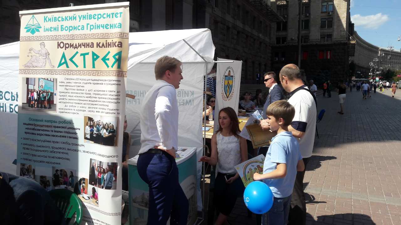 1 червня 2017 року колектив ЮК «Астрея» Факультету права та міжнародних відносин Університету долучився до участі у заході, присвяченому захисту прав дитини. Організаторами заходу виступили: Координаційний центр безоплатної вторинної правової допомоги, Другий київський місцевий центр з надання безоплатної вторинної правової допомоги, Київська міська державна адміністрація, Державна служба зайнятості України, Академія адвокатури України та Київський університет імені Бориса Грінченка. Під час заходу, усі бажаючі отримали безоплатну правову консультацію з різних питань реалізації, захисту та відновлення порушених прав дітей та їхніх батьків. Такі послуги надавали юридичні клініки Академії адвокатури України, Національного авіаційного університету, Європейського університету та Київського університету імені Бориса Грінченка, Київський міський та регіональний центр зайнятості, центри вторинної безоплатної правової допомоги в м. Києві та Міжнародний благодійний фонд «Health-right» «Право на здоров’я».