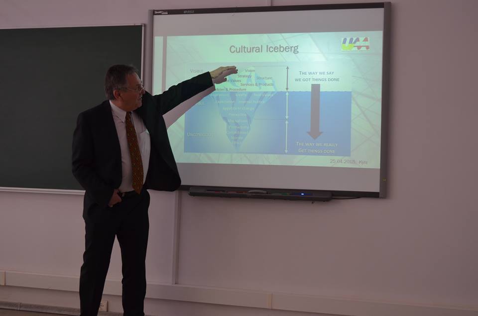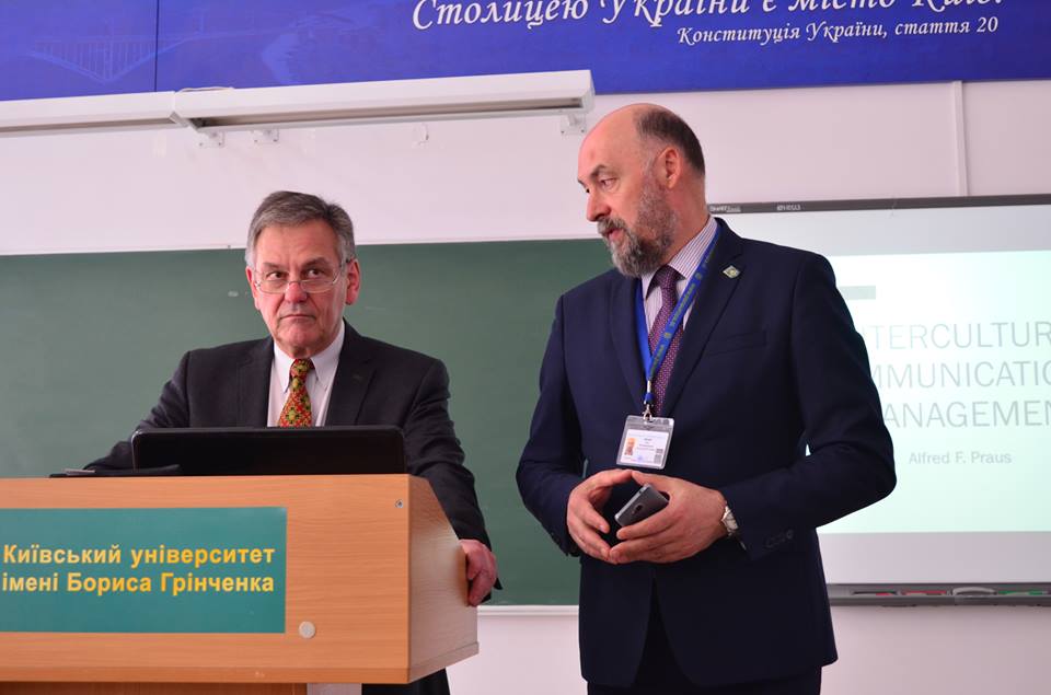 Темою практичного заняття була «Міжкультурна комунікація та менеджмент». Студенти мали змогу дізнатись особливості різних народів та взаємодії з ними, зрозуміти, наскільки важливо для дипломатів наперед вивчати, як спілкуватись і поводити себе в різних країнах. Пан Праус поділився власним 30–річним досвідом в бізнесі та дав практичні поради студентам. Окрім того, що студенти попрактикували англійську мову, також мали можливість дослідити і порівняти особливості спілкування, прийняття рішень, ділових стосунків, відносин керівник–підлеглий між українцями та австрійцями. Учасники Школи були дуже задоволені бути присутніми на занятті та поставити важливі для себе питання Альфреду Праусу.