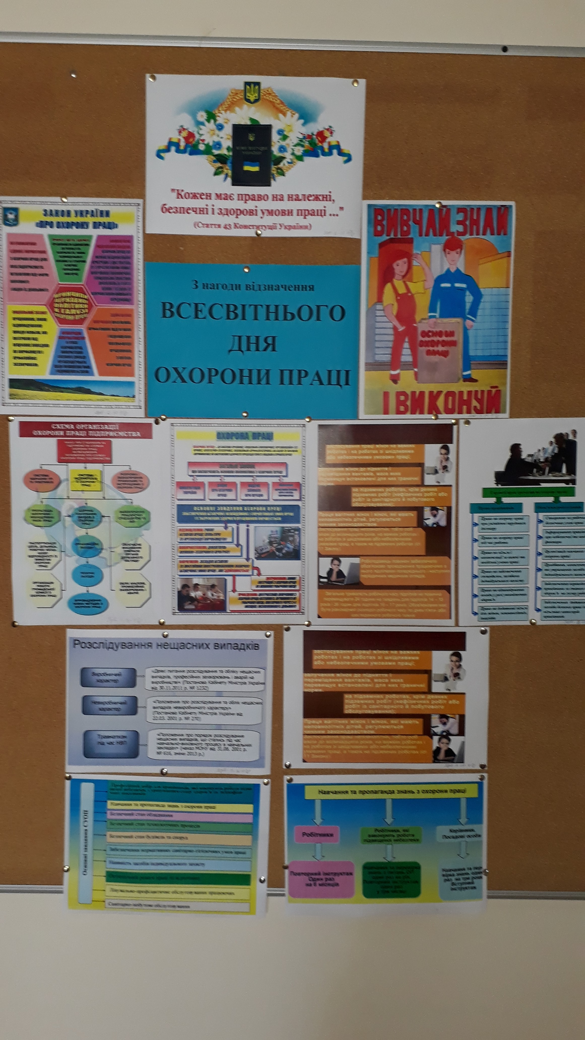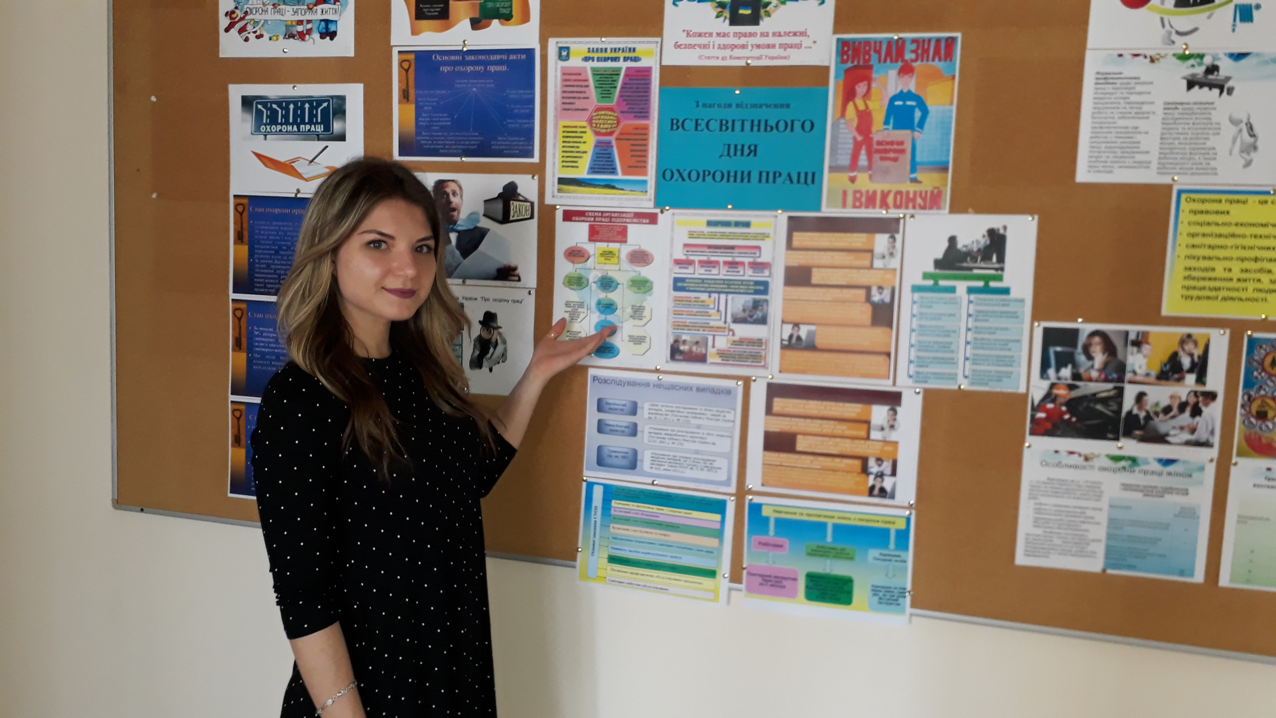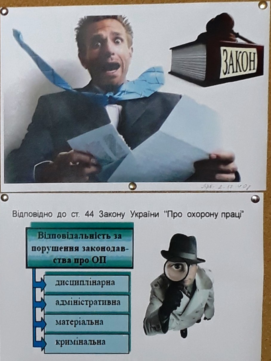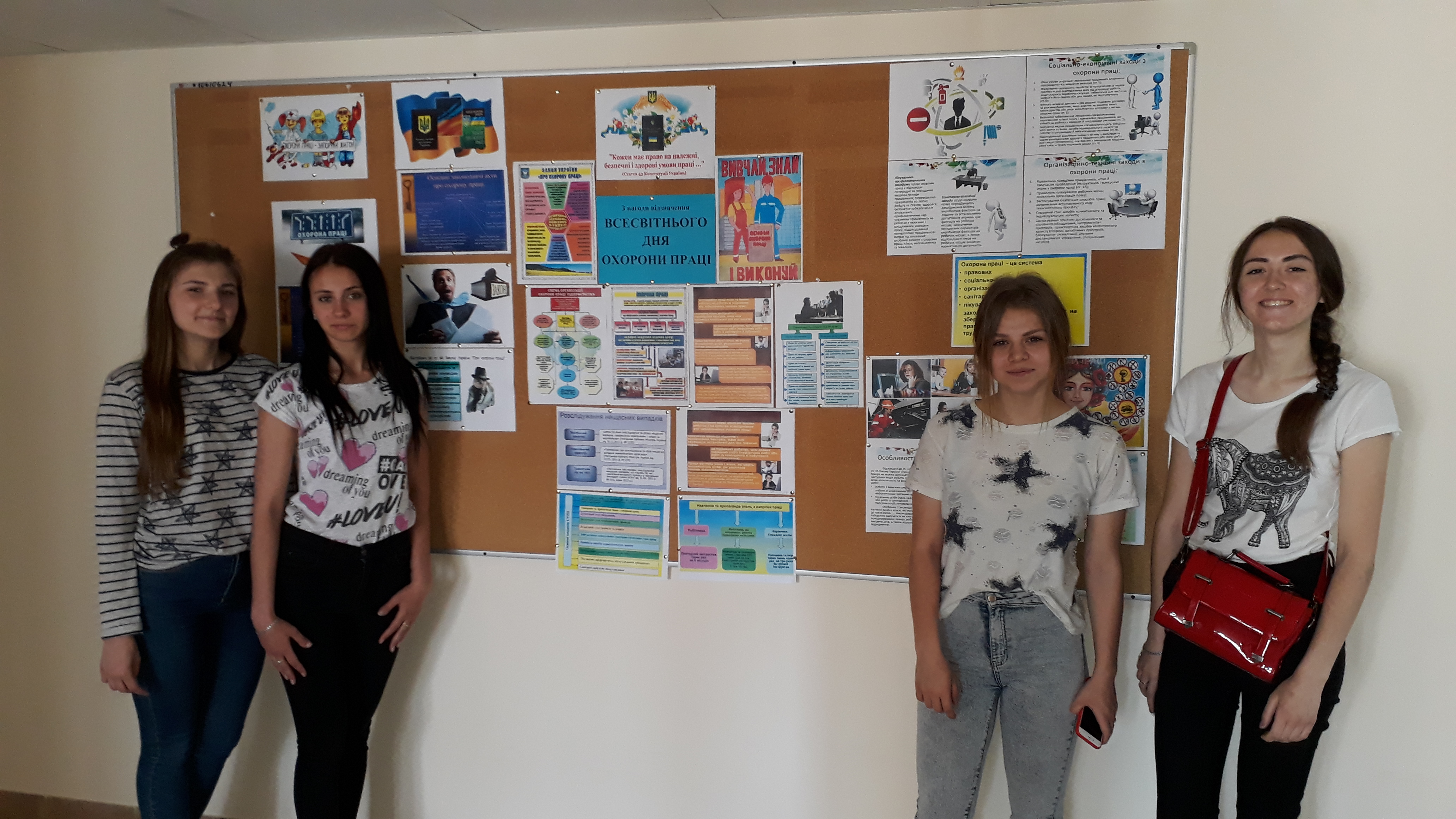 З нагоди Всесвітнього дня охорони праці з 28.04.2018 р. по 21.05.2018 р. старший викладач кафедри публічного та приватного права Обловацька Н.О. провела виставку творчих робіт серед студентів спеціальності "Право" на тему: “Охорона праці” . Автори змогли висвітлити основні правила та норми охорони праці працівників і запропонували свої пропозиції щодо їх вдосконалення.