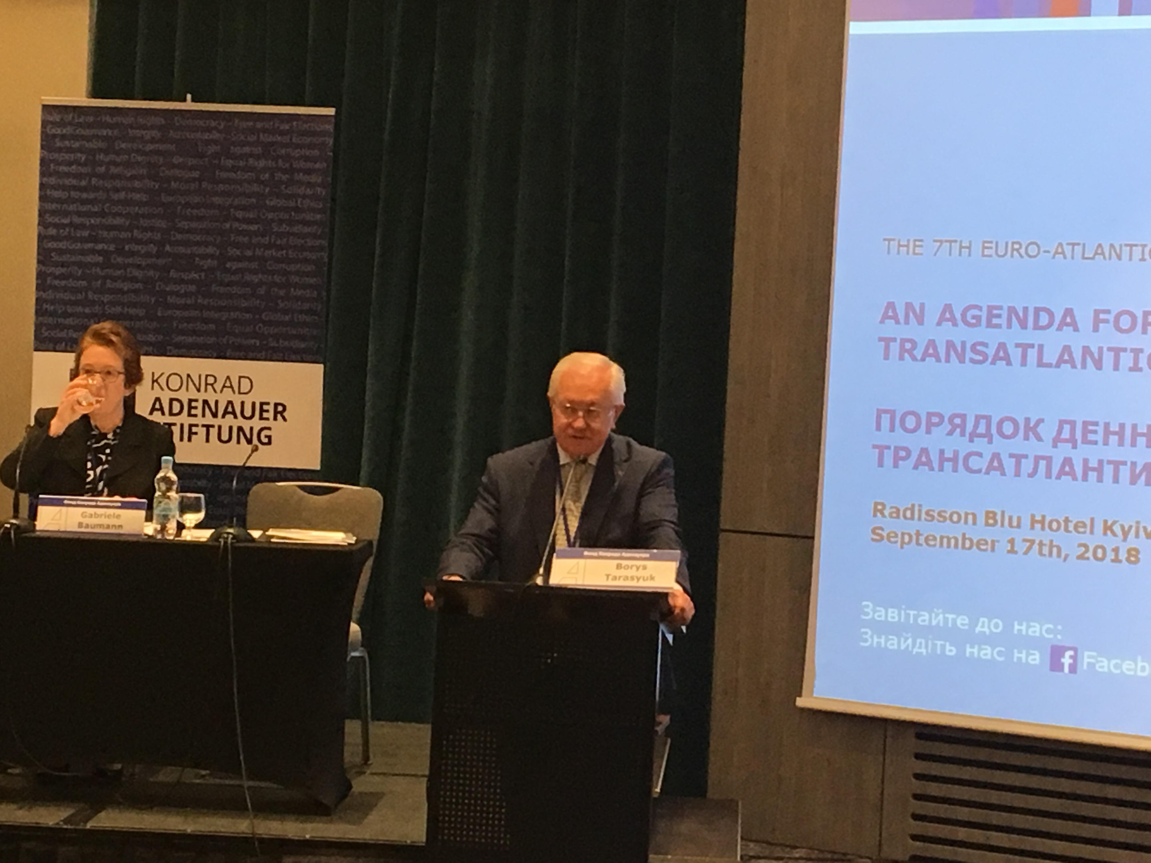 17 вересня 2018 професор Олександр Цвєтков та старший викладач Олена Пістракевич, співробітники кафедри міжнародних відносин та міжнародного права, взяли участь в роботі 7-го Євроатлантичного Форуму, який проводили Представництво Фонду Конрада Аденауера в Україні та Інститут Євроатлантичного Співробітництва для обговорення та визначення основних проблем та перспектив для трансатлантичних партнерів. Учасниками форуму стали представники уряду та громадянського суспільства України та експерти з Євросоюзу, Сполучених Штатів та Канади. Серед них: віце-прем’єр-міністр України з питань європейської та євроатлантичної інтеграції України Іванна Климпуш-Цинцадзе, директор Представництва Фонду Конрада Аденауера в Україні Габріеле Бауманн, народний депутат України, заступник голови Комітету у закордонних справах, міністр закордонних справ (1998-2000, 2005- 2007), директор Інституту Євро-Атлантичного співробітництва Борис Тарасюк, міністр закордонних справ України Павло Клімкін, депутат Європарламенту Міхаель Галер, Надзвичайний і Повноважний Посол Канади в Україні Роман Ващук, народний депутат України, голова Комітету у закордонних справах Ганна Гопко, директор Ініціативи з контролю за озброєнням, Інститут Брукінгса, Посол Стівен Пайфер; директор Центру інформації та документації НАТО в Україні Барбора Маронкова та ін.