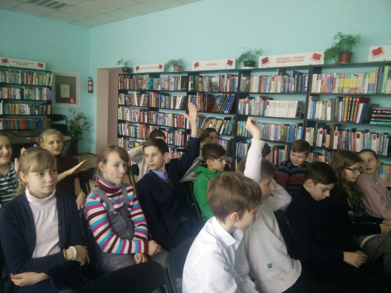 12 лютого 2018 р. У бібліотеці ім. П.Усенка для дітей відбулася зустріч викладача кафедри публічного і приватного права Факультету права та міжнародних відносин Київського університету ім. Б. Грінченка Байталюк Ольги Михайлівни з учнями 5го класу гімназії № 191 м. Києва.