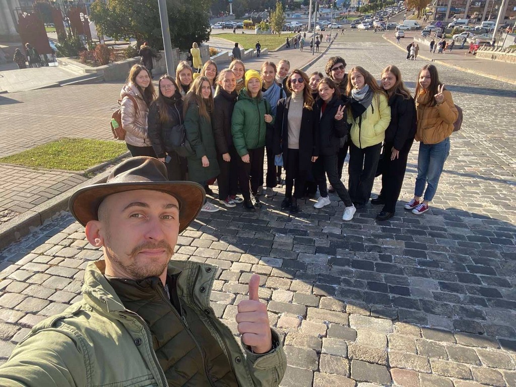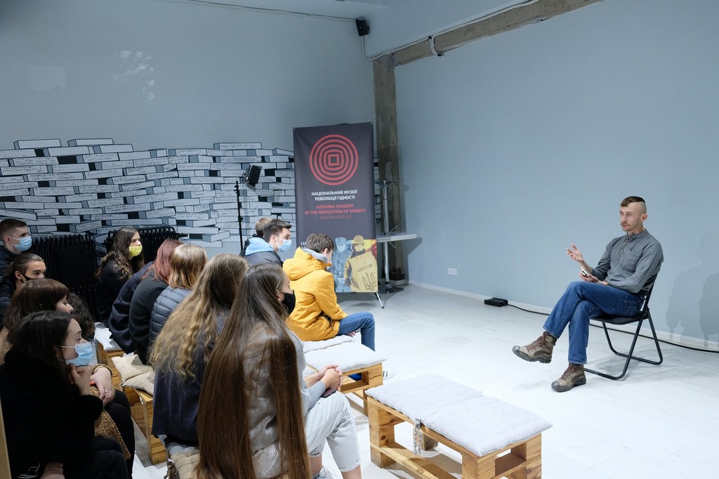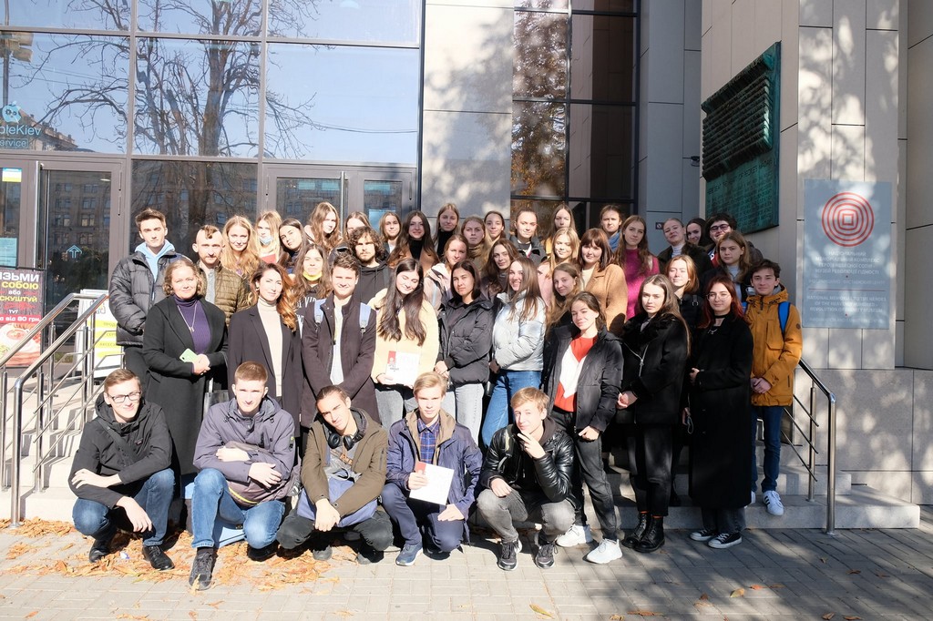 Напередодні Дня захисників та захисниць України студенти першого курсу освітніх програм бакалаврату «Суспільні комунікації» та «Регіональні студії» відвідали Інформаційний центр Національного меморіального комплексу Героїв Небесної Сотні – Музею Революції Гідності, що знаходиться у Будинку профспілок на Майдані Незалежності у м. Київ. Студенти та куратори Олена Володимирівна Пістракевич та Марина Миколаївна Бессонова ознайомилися з експозицією "Назустріч свободі!", що присвячена подіям Революції Гідності, стилізованою картою Майдану, ключовими місцями Революції Гідності, де перебували силовики і мітингарі, розміщувалися барикади. Екскурсію проводив науковий співробітник Музею Віктор Кривоносов, який був активним учасником Євромайдану та Революції Гідності, брав участь в антитерористичній операції на Сході України.