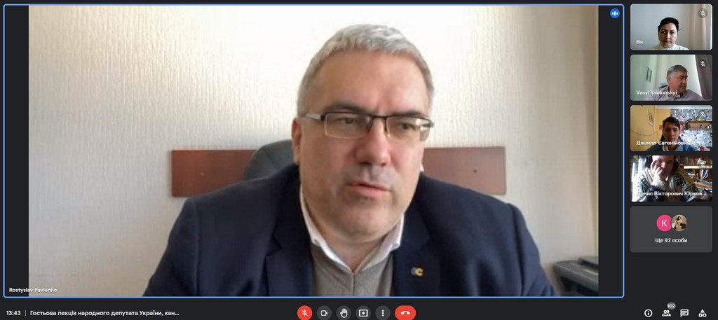 18 жовтня 2022 року відбулася гостьова онлайн-зустріч викладачів та здобувачів освітніх програм «Суспільні комунікації», «Регіональні студії» другого (магістерського) рівня й освітніх програм «Суспільні комунікації», «Регіональні студії» та «Міжнародне право» першого (бакалаврського) рівня з народним депутатом України, кандидатом політичних наук, доцентом Ростиславом Павленком. Головна мета зустрічі – формування знань здобувачів щодо ролі релігійного чинника у розвитку політики держави та особливостей релігійної дипломатії.