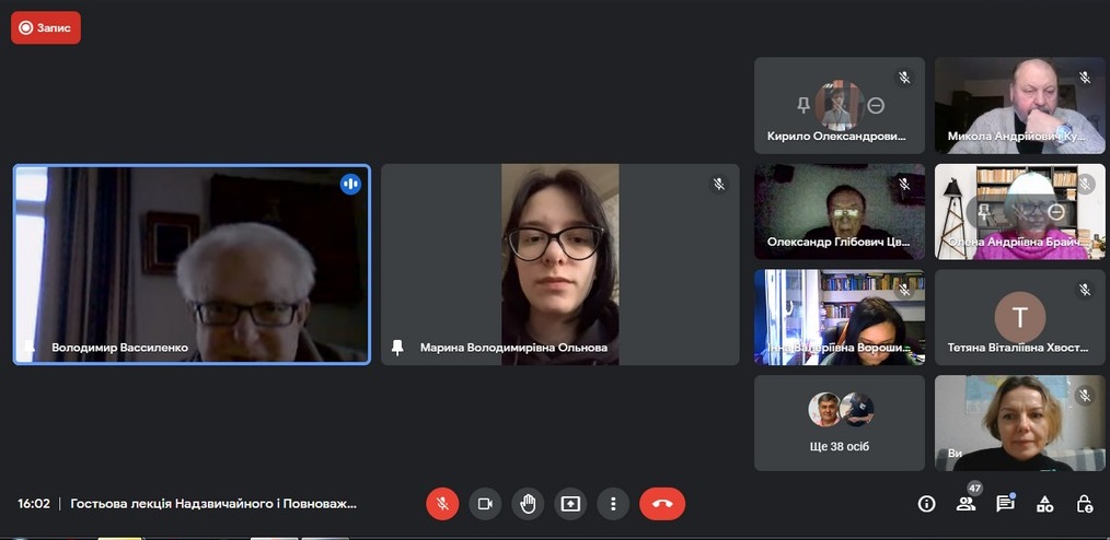 05 грудня 2022 року відбулася гостьова онлайн-лекція Надзвичайного і Повноважного Посла України, доктора юридичних наук, професора Володимира Андрійовича Василенка на тему: «Будапештський меморандум: міфи і реальність». Приємно, що лекція від одного з безпосередніх учасників процесу підготовки Меморандуму для здобувачів освітніх програм «Суспільні комунікації», «Регіональні студії» другого (магістерського) рівня й освітніх програм «Суспільні комунікації», «Регіональні студії» та «Міжнародне право» першого (бакалаврського) рівня відбулася у 28-му річницю його підписання.