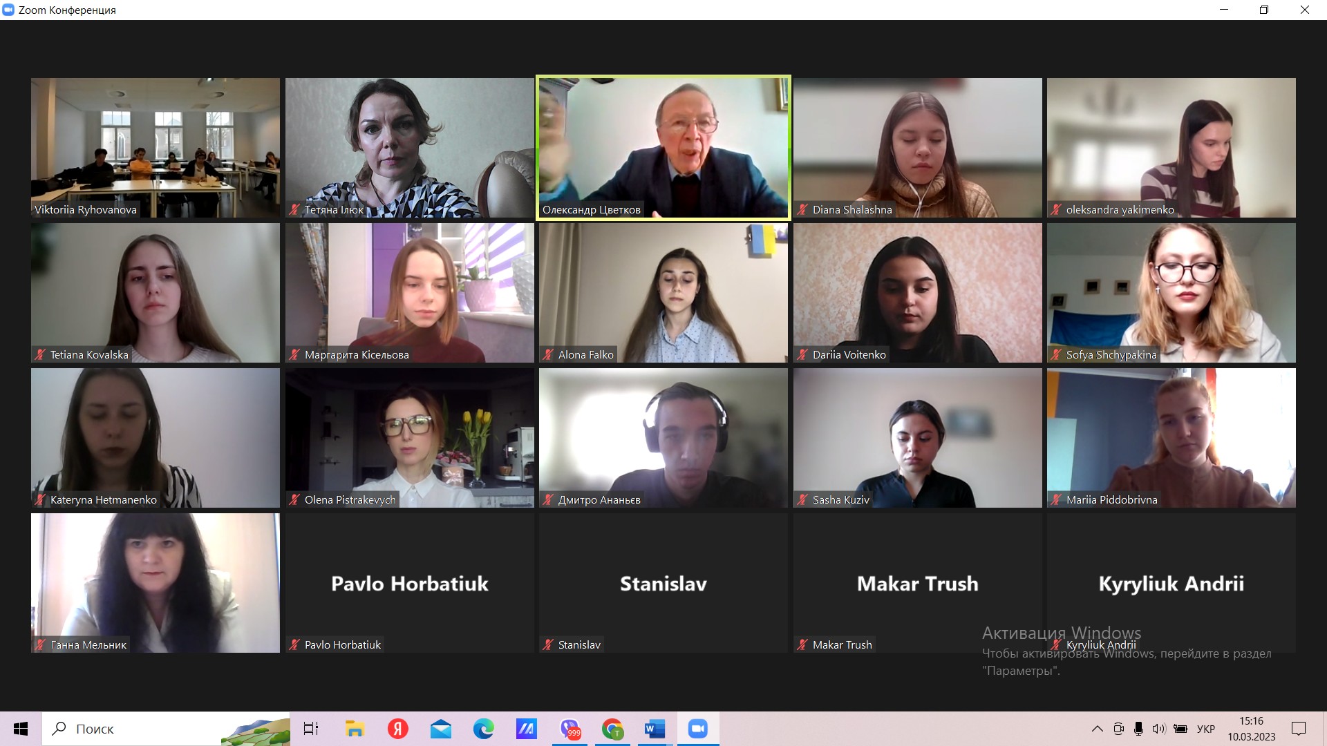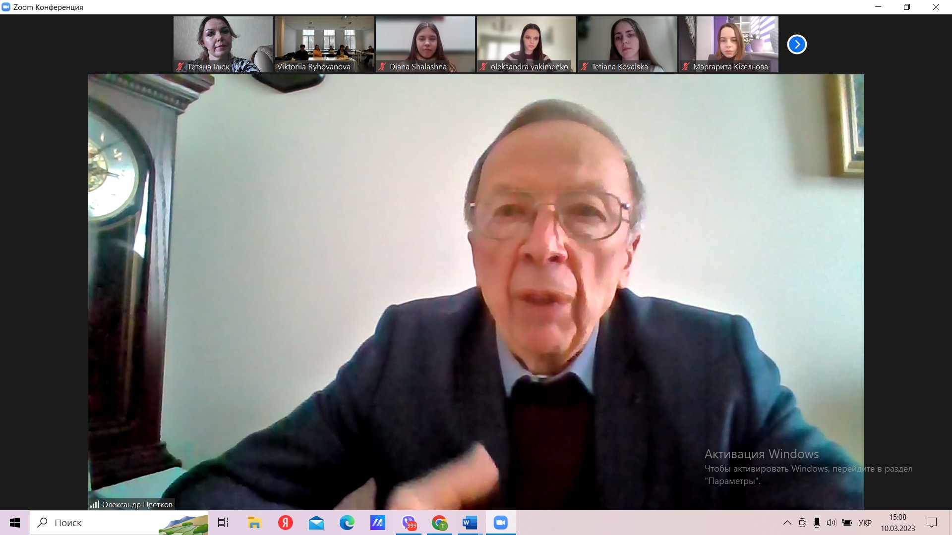 Величезний інтерес студентської аудиторії викликало цікаве висвітлення особливостей української історії та ідентичності, геополітичного місця України в світі від Олександра Глібовича Цвєткова, професора кафедри міжнародних відносин, доктора історичних наук, Надзвичайного та Повноважного Посланника першого класу. Підкреслена ним спільність цінностей та пріоритетів народів України та Нідерландів, їх прагнення, місце нашої держави на геополітичній карті світу та її перспективи ще раз показали зарубіжним студентам, яке значення має Україна та її перемога для усього європейського співтовариства.
