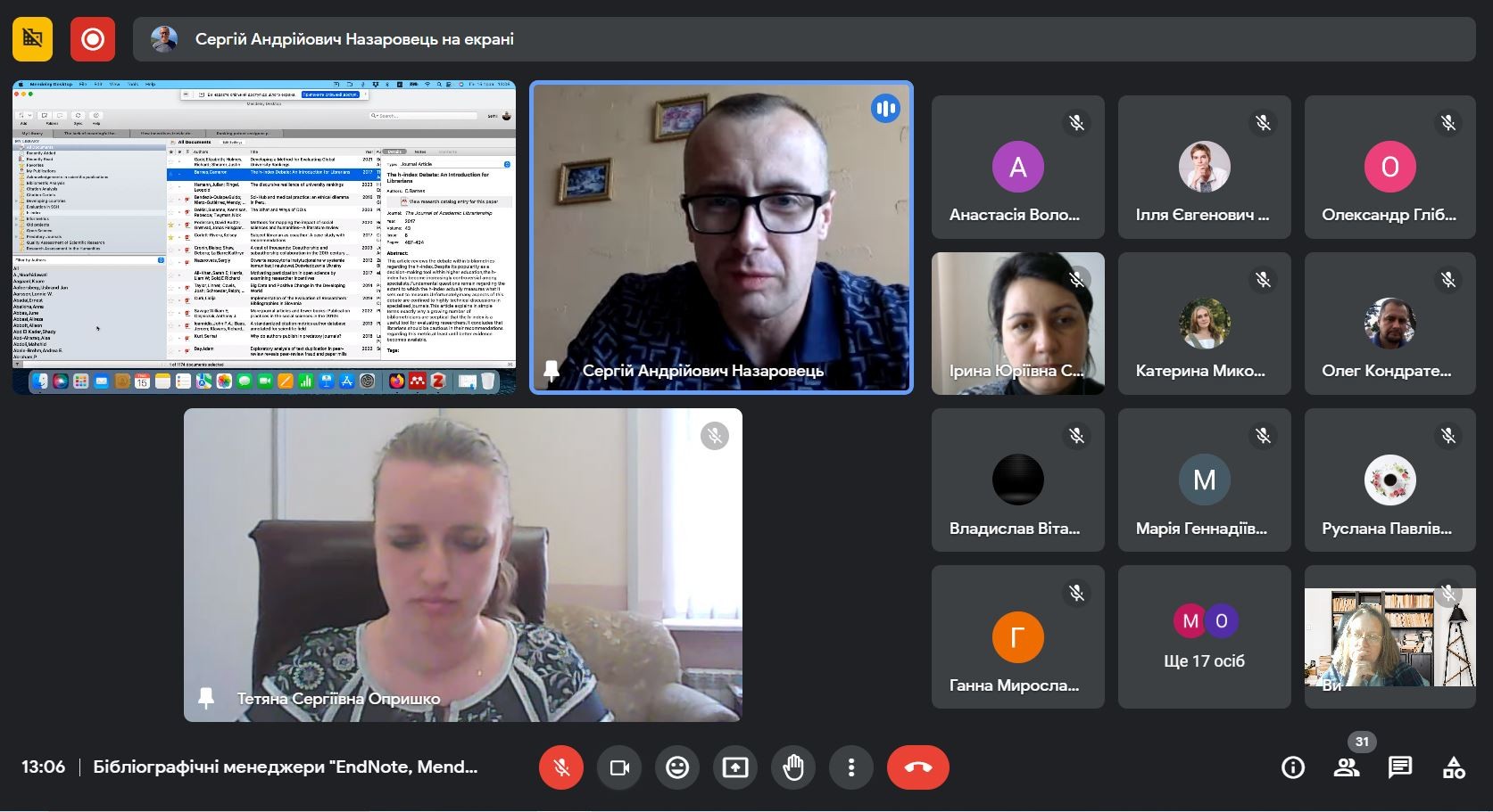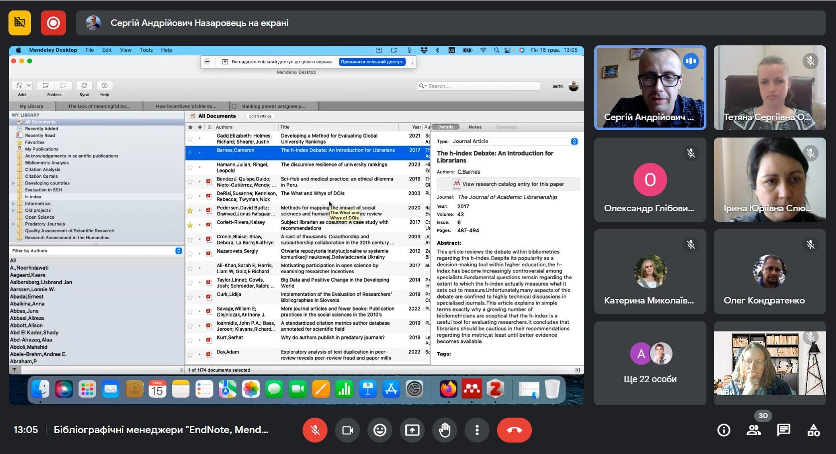 15 травня 2023 р. в рамках передипломної практики, передбаченої бакалаврськими освітніми програмами «Суспільні комунікації» та «Регіональні студії», здобувачі мали можливість ознайомитися з особливостями кількох бібліографічних менеджерів, які є корисними ресурсами при написанні наукових та дослідницьких робіт. Лекція була проведена завдяки співпраці кафедри міжнародних відносин та Бібліотеки Київського університету імені Бориса Грінченка. До здобувачів приєдналися викладачі кафедри І.Ю.Слюсаренко, О.А.Брайчевська, О.В.Пістракевич, О.Г.Цветков, О.Ю.Кондратенко, Г.М.Мельник, М.М.Бессонова, які разом зі студентами прослухали інформацію та подивилися приклади застосування функціоналу бібліографічних менеджерів EndNote, Mendeley, Zotero. Кафедра вдячна представникам Бібліотеки: директору Тетяні Сергіївні Опришко, завідувачу відділу бібліотеки Анастасії Володимирівні Литвиновій та науковому співробітнику Сергію Андрійовичу Назаровцю за надану можливість ознайомитися з корисною інформацією.