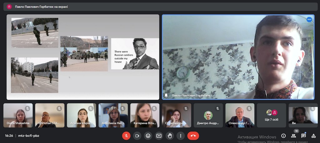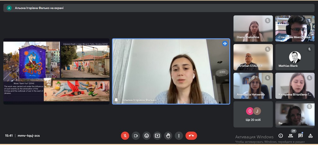 Під час англомовної зустрічі, головна тема якої була «Українська молодь: сила, здобута під час війни», українські студенти ознайомили австрійських колег з інформацією про Україну, її культуру, ідентичність та суспільні трансформації. За допомогою презентацій та у форматі живого діалогу студенти розповіли про нашу країну, її ідентичність та культуру, показали українську молодь як рушійну силу змін. Особисті історії прекрасно розкрили тему консолідації українського суспільства та молоді. Адже вже понад рік українська молодь активно займається волонтерством, робить свій внесок у культурне та соціальне життя країни і її оборону. Модератором та натхненницею зустрічі стала здобувачка 4-го року навчання ОПП “Суспільні комунікації” першого (бакалаврського) рівня Діана Шалашна.