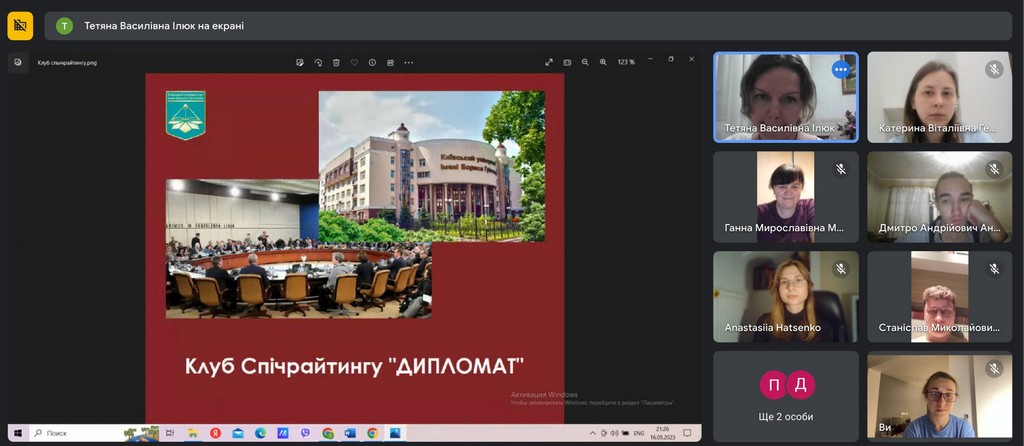 16 травня 2023 року, в рамках підготовки до онлайн-дискусії студентів Факультету права та міжнародних відносин із представниками університетів Австрії, відбулася зустріч Клубу Спічрайтингу «ДИПЛОМАТ».