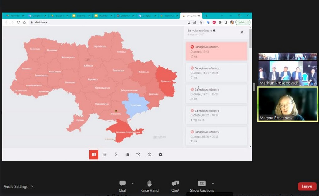 “Ukrainian Talks” – це серія зустрічей у змішаному форматі, покликана привернути увагу до проблематики російсько-української війни. 08 червня 2023 р. відбулася панельна дискусія на тему «Geo-security dimensions of the war in Ukraine», присвячена змінам у глобальних вимірах питань безпеки, в якій взяла участь Марина Бессонова, доцент кафедри міжнародних відносин Київського університету імені Бориса Грінченка. Ідея проєкту та координація його проведення належить професору Даремського університету (Durham University) Маркіяну Прокоповичу, який зміг зібрати цікавих спікерів з України, Великої Британії, США тощо. “Ukrainian Talks” – один з вимірів підтримки України, завдяки якому британське академічне середовище сприяє поширенню українських інтерпретацій російсько-української війни та обговоренню наслідків російської агресії для України та світу. Цей проєкт – один з прикладів співпраці між Даремським та Запорізьким національним університетами, завдяки академічним контактам з останнім кафедра міжнародних відносин також долучилася до цього проєкту.