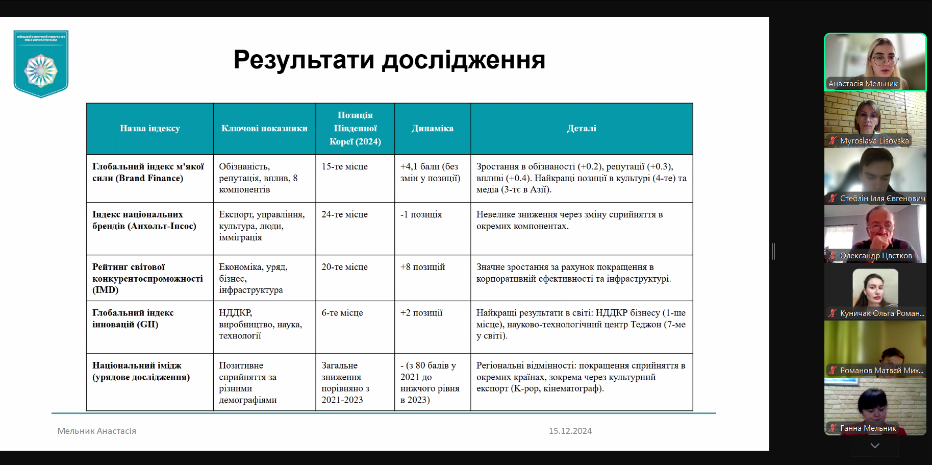 16 грудня 2024 р. відбувся захист кваліфікаційних магістерських робіт здобувачів освітньо-професійної програми «Суспільні комунікації» другого (магістерського) рівня вищої освіти. Здобувачами були представлені дослідження на актуальні теми, присвячені пріоритетам зовнішньої політики країн Бенілюксу, формуванню іміджу Великої Британії, публічній риториці ліворадикальних партій у Великій Британії та Франції, ролі медіа в російсько-українській війні, проблемам санкційної політики Великої Британії, брендингу як інструменту реалізації зовнішньої політики Південної Кореї.