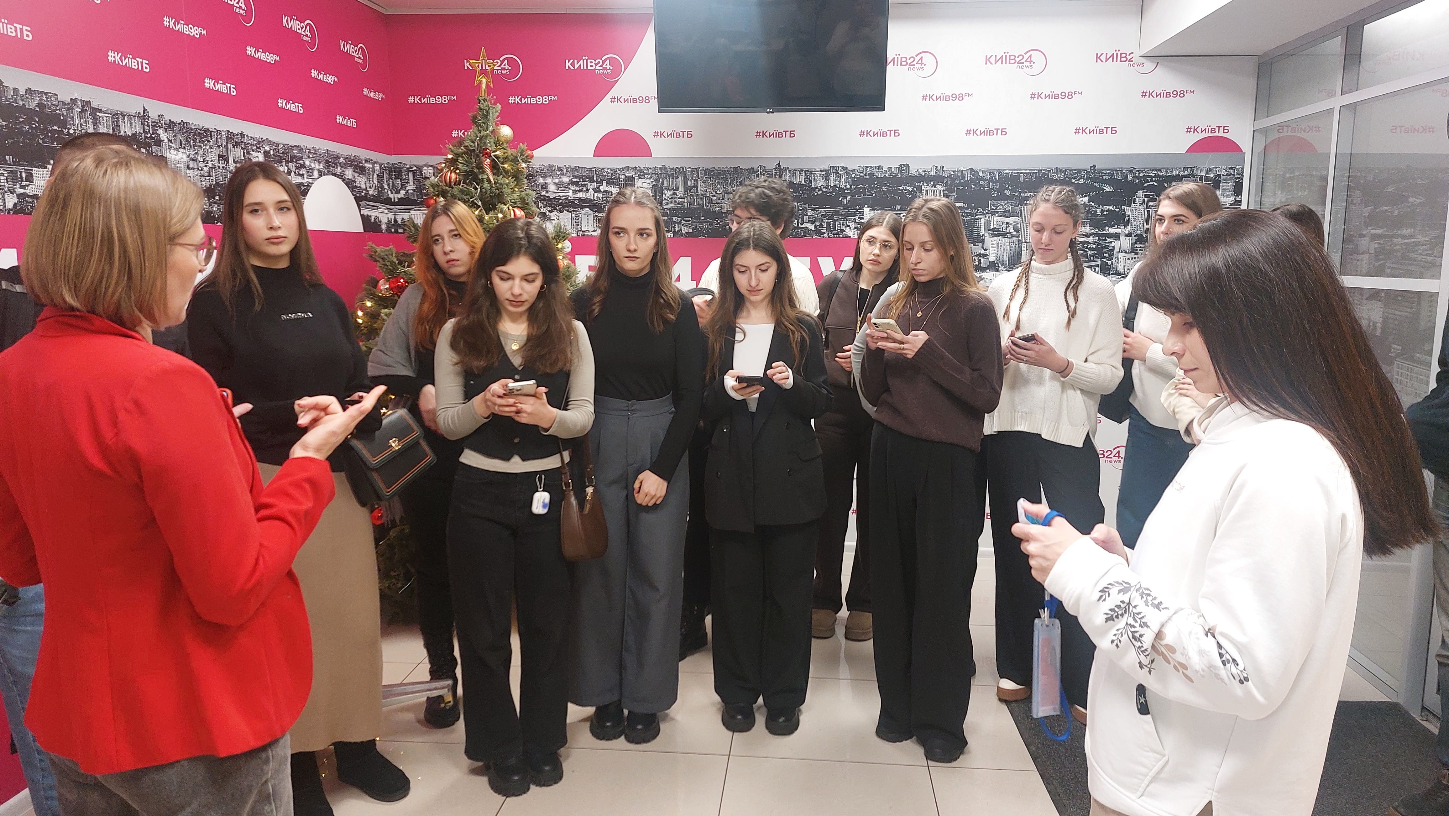 06 грудня 2024 року студенти 2-го курсу освітньо-професійної програми «Регіональні студії» та 4-го курсу ОПП «Суспільні комунікації» відвідали редакції телеканалу КИЇВ24 та «Радіо Київ – 98 FM» та познайомилися із особливостями роботи українського телебачення та радіо.