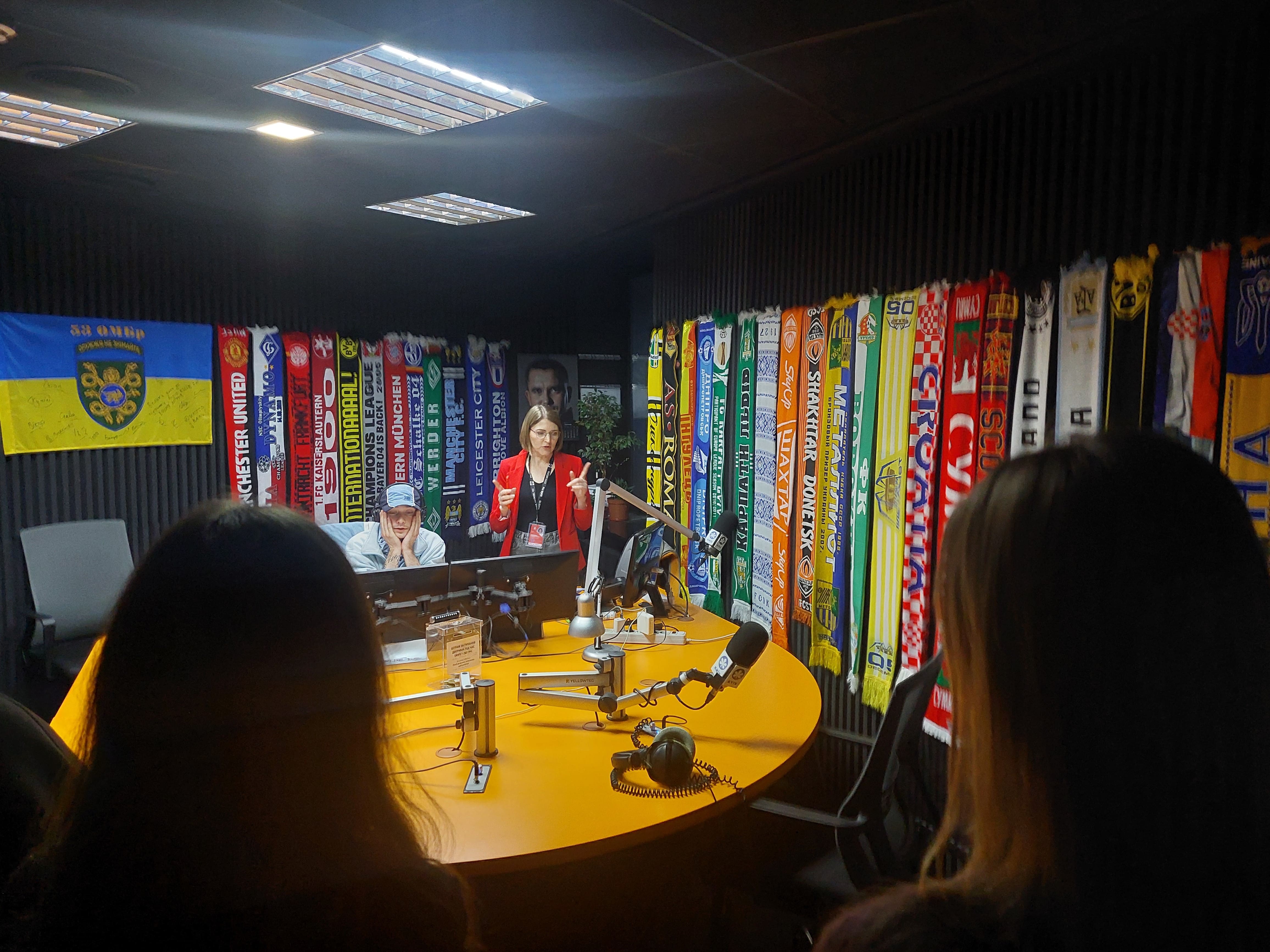 Екскурсію провела головна редакторка «Радіо Київ – 98 FM» Ірина ГЛАВАЦЬКА, яка познайомила студентів із роботою телеканалу та радіостанції, розповіла про принципи сучасної журналістики, про роль муніципальних медіа в сучасному світі та самовіддану роботу команди ТК «Київ» з перших днів повномасштабного вторгнення.