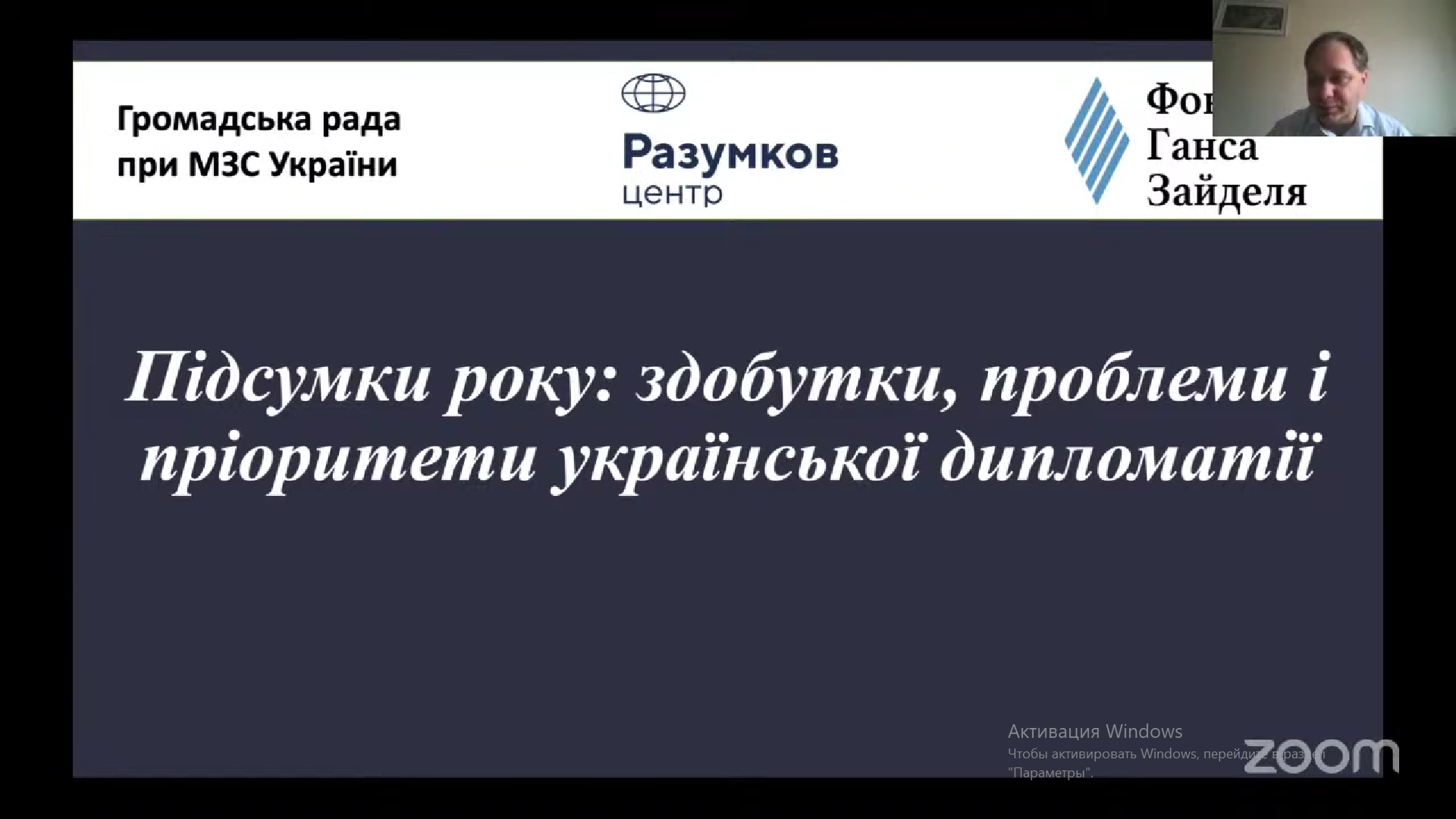 Під час дискусії були презентовані результати двох експертних опитувань, проведених Центром Разумкова і Громадською Радою при МЗС України в рамках проєкту «Експертно-аналітична підтримка діяльності МЗС України в контексті розвитку публічної дипломатії і зміцнення діалогу влади і суспільства». Поважним експертним товариством було обговорено зовнішньополітичні підсумки року, завдання і пріоритети національної дипломатії-2025 а також сучасний стан і перспективи інтеграції України до ЄС і НАТО. Участь у дискусії взяли президент Центру Разумкова Юрій ЯКИМЕНКО, директор соціологічної служби Центру Разумкова Андрій БИЧЕНКО, керівник Центру дослідження росії, Міністр закордонних справ України (2007–2009 рр.) Володимир ОГРИЗКО, директор Інституту зовнішньополітичних досліджень Григорій ПЕРЕПЕЛИЦЯ, співдиректор програм зовнішньої політики та міжнародної безпеки Центру Разумкова Михайло ПАШКОВ, керівник Всеукраїнської громадської ліги Україна-НАТО, голова Громадської ради при МЗС України Сергій ДЖЕРДЖ, керівник Фонду «Відкрита політика», екс-міністр молоді і спорту України (2014-2019 рр.) Ігор ЖДАНОВ.