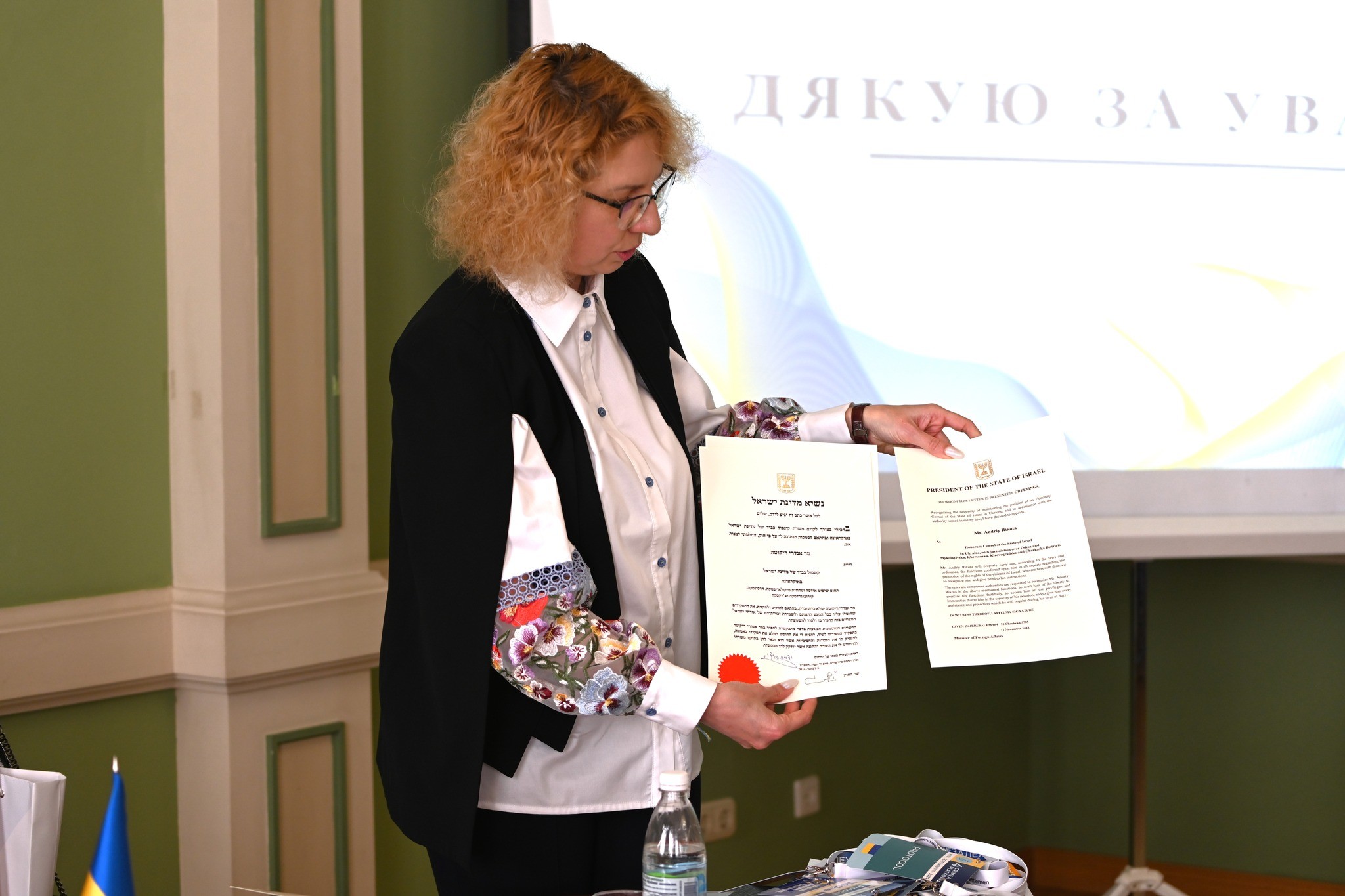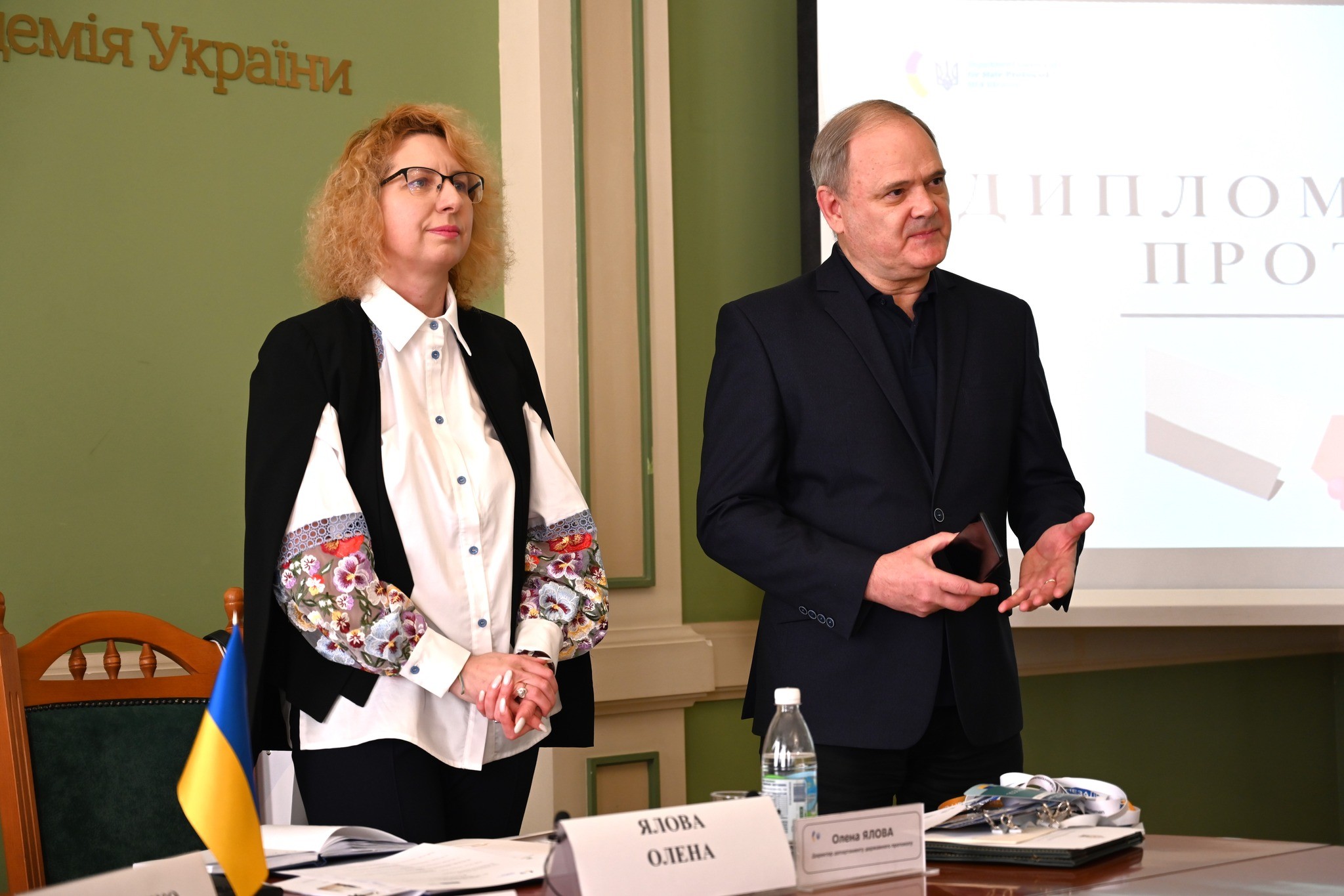 - Олена Ялова, директор Департаменту державного протоколу, яка ознайомила присутніх з особливостями та важливістю державного протоколу в дипломатичній сфері;