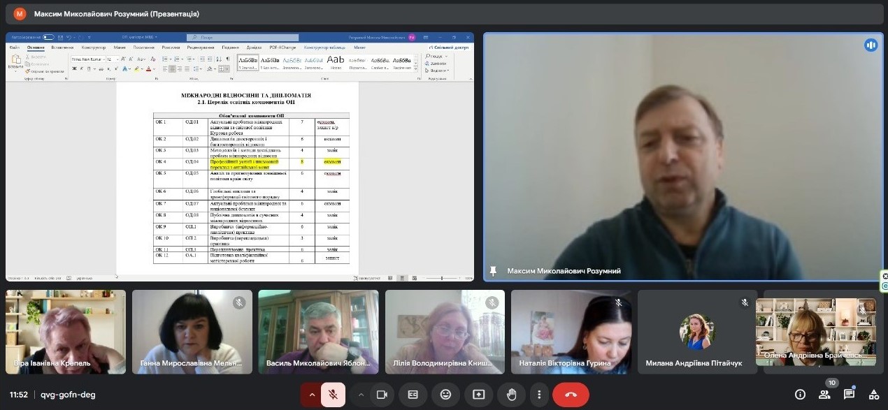 Максим РОЗУМНИЙ, доктор політичних наук, професор кафедри міжнародних відносин, керівник проєктної групи з розроблення нової освітньої програми «Міжнародні відносини та дипломатія» представив проєкт нової освітньої програми для магістрів.