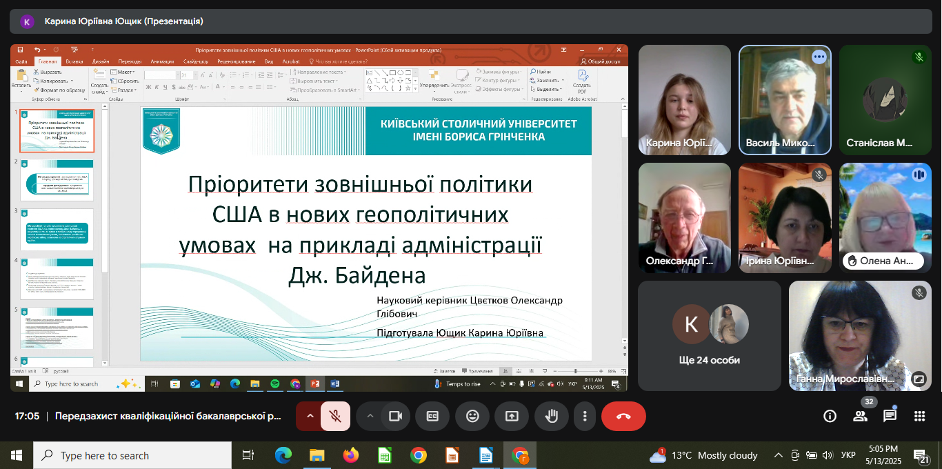 13 травня 2025 року відбулося засідання кафедри міжнародних відносин, під час якого було проведено попередній захист бакалаврських робіт студентів 4-го курсу першого (бакалаврського) рівня вищої освіти ОПП «Регіональні студії».