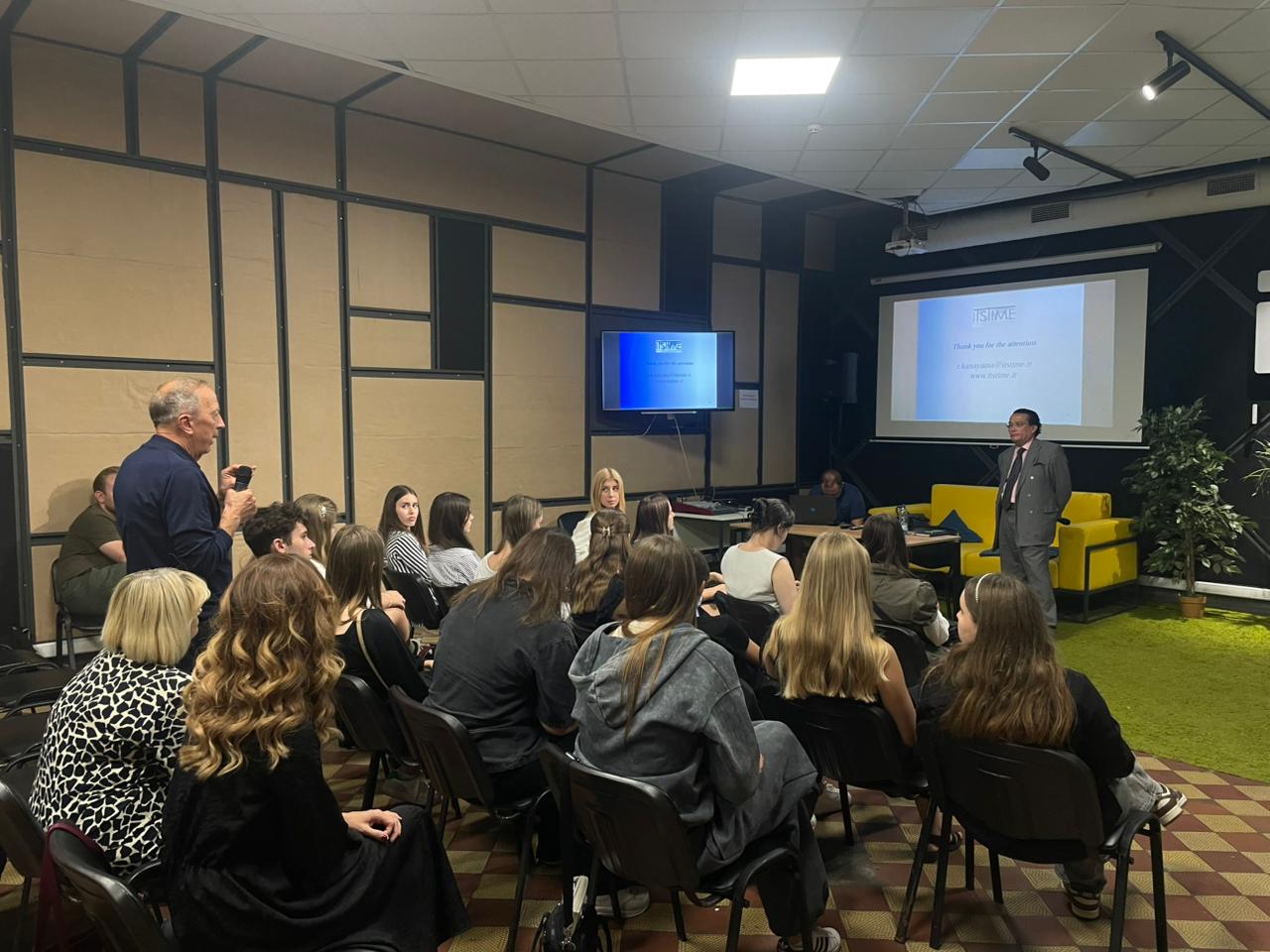 23 вересня 2025 року на запрошення «Сід Форум Україна» студенти ОП «Суспільні комунікації» та ОП «Міжнародні відносини та зовнішня політика» Факультету права та міжнародних відносин разом із професором Олександром Цвєтковим, доцентами Оленою Брайчевською та Оленою Пістракевич відвідали лекцію міжнародного експерта з електронної війни, енергетичної безпеки та інноваційних технологій Рене Д. Канаями.