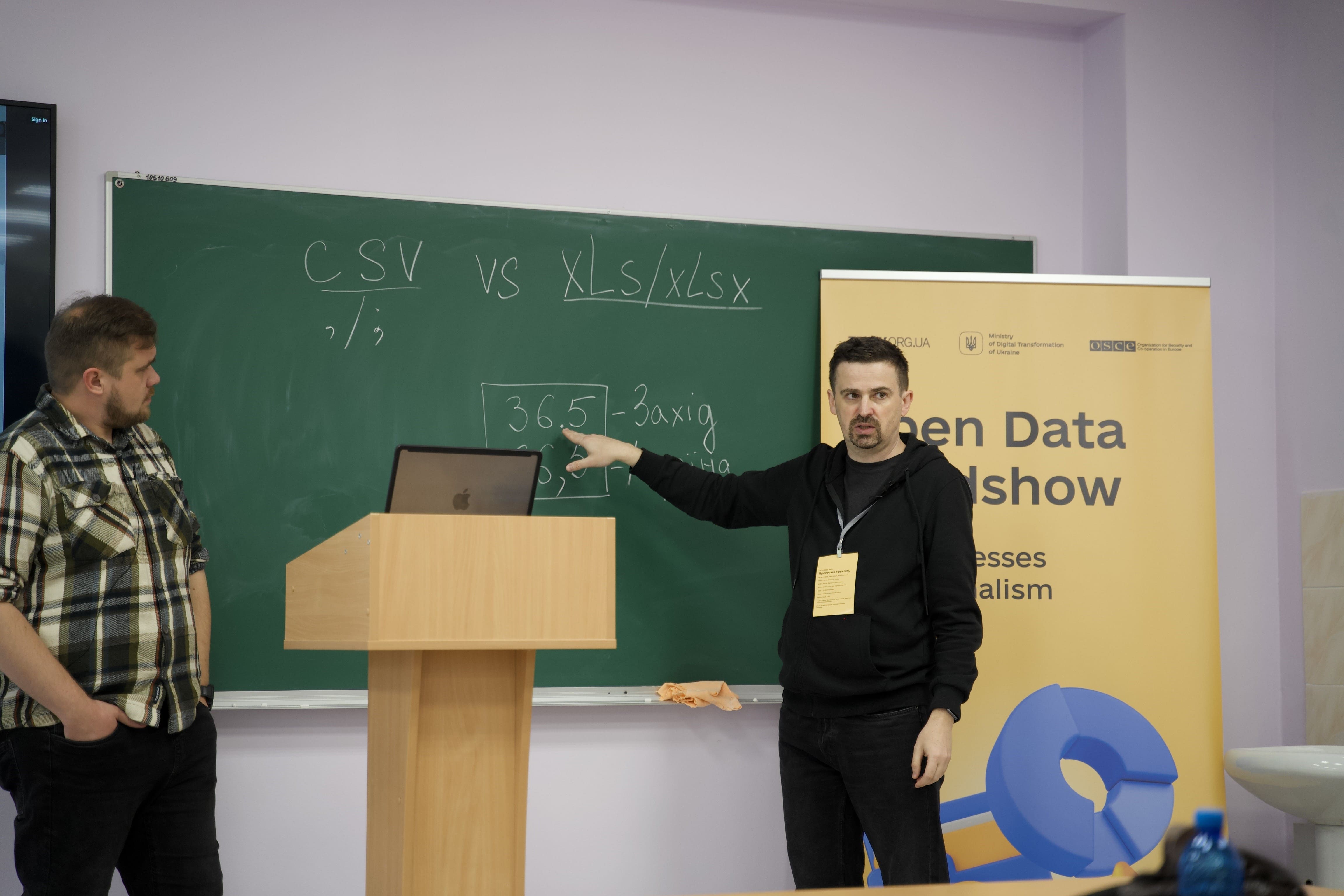 Захід розпочався з ознайомлення із впровадженням відкритих даних в управлінні містом Києвом, зокрема через застосунок «Київ Цифровий». Цю частину навчання провела начальниця відділу оприлюднення інформації Управління інформаційної політики та доступу до публічної інформації Апарату виконавчого органу КМР (КМДА) Катерина Бурковець, а керівниця експертної групи розвитку сфери відкритих даних Директорату електронних реєстрів і даних Мінцифри Яніна Любива детально розповіла про сферу відкритих даних і її розвиток в Україні.